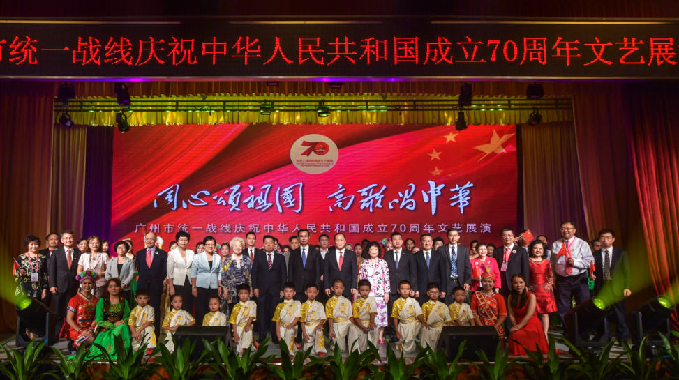 【香港商報網訊】記者 賴小青 李苑立 報導:「同心頌祖國 高歌唱中華」廣州市統一戰線慶祝中華人民共和國成立70周年文藝展演日前在廣州市社會主義學院舉行。廣州市市長溫國輝,省委統戰部副部長李陽春等出席。