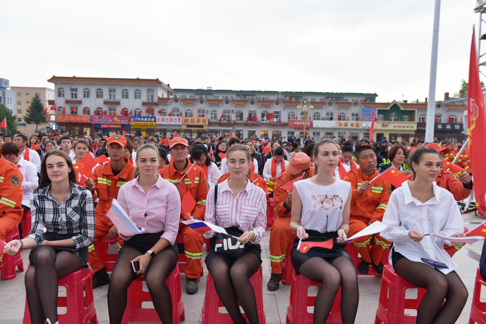 整個頌歌大會現場,數十面鮮艷的國旗迎風飄揚,十餘個氫氣球高高懸起,五顏六色的彩煙騰空而起,營造出一片喜慶、祥和、熱烈的氣氛。至此祖國70歲華誕和中俄建交70周年來臨之際,來自俄羅斯的友人也來到了呼瑪「迎慶七十年 建設新呼瑪」全民頌歌大會現場。