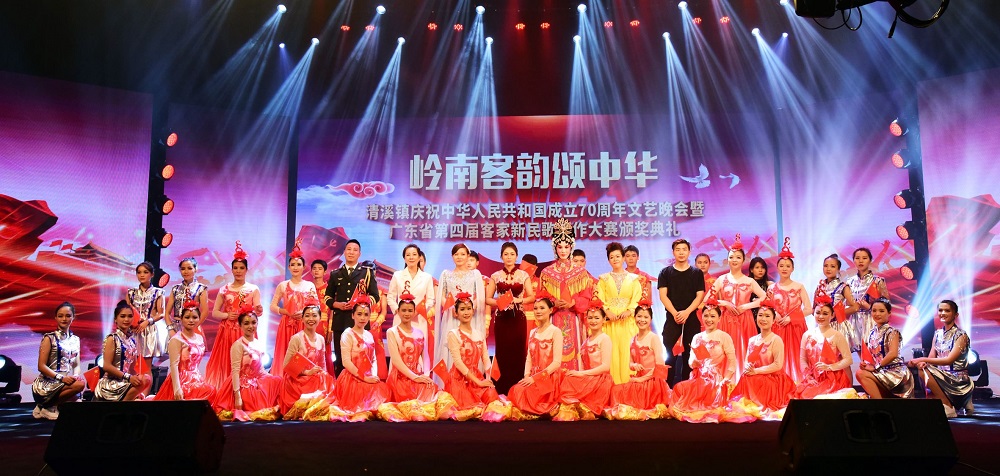 【香港商報網訊】記者 冷運軍 報導:銀瓶為筆,清溪為墨,寫不完心中的頌歌;群峰放聲,藍天迴響,唱不盡永恆的讚歌。29日晚,「嶺南客韻頌中華」——廣東省東莞市清溪鎮慶祝中華人民共和國成立70周年文藝晚會暨廣東省第四屆客家新民歌創作大賽頒獎典禮在清溪文化廣場影劇院舉行,1000多名清溪各行各業代表和100多名港澳台鄉親歡聚一堂,借歌聲唱響愛國情,喜迎新中國成立70周年華誕。