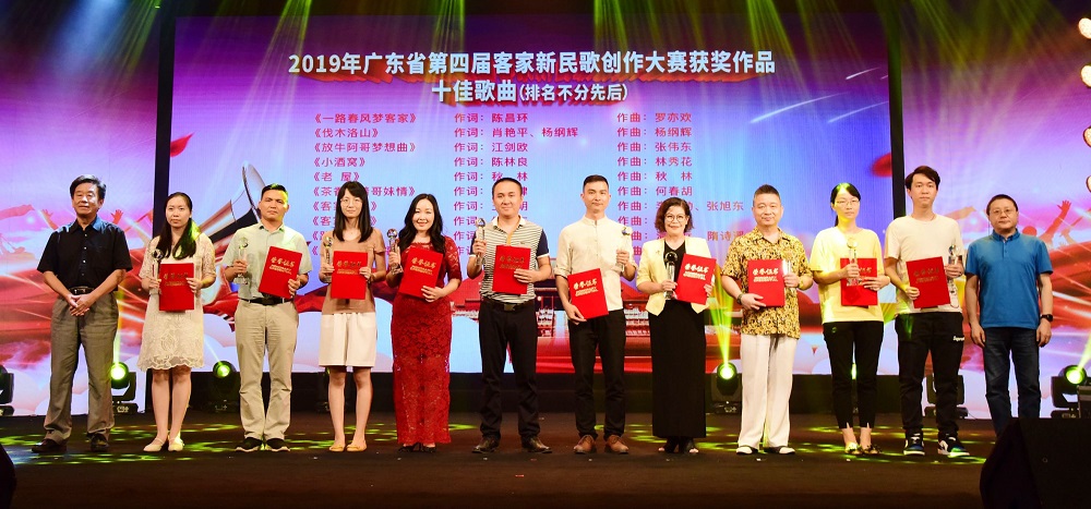 晚會現場,首先為廣東省第四屆客家新民歌創作大賽獲獎選手及優秀作品頒獎。據悉,2019年廣東省第四屆客家新民歌創作大賽由廣東省公共文化促進會、廣東省音樂家協會、東莞市文化館、東莞市清溪鎮人民政府主辦,廣東省客家新民歌(清溪)創作基地承辦。大賽於今年6月啟動作品徵集活動,受到了社會各界的廣泛關注。廣東省各地的客家山歌愛好者以及對客家音樂感興趣的音樂人紛紛報名參賽,組委會累計收到各地參賽作品近100件。