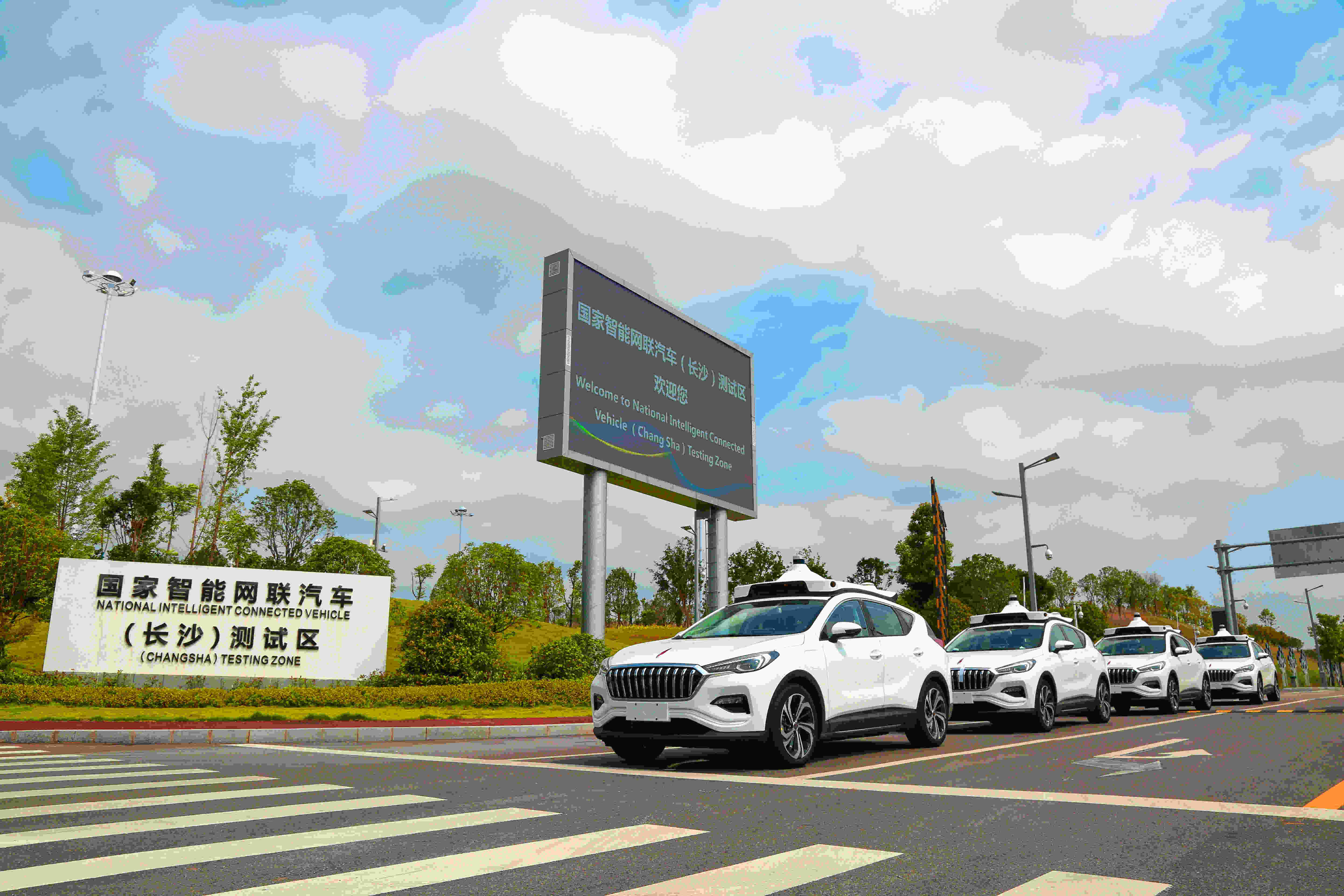 長沙正在致力打造全球智能網聯汽車創新及產業高地,湘江新區擁有領先全國的智能系統測試區。圖為首批量產L4級自動駕駛的士亮相湘江新區