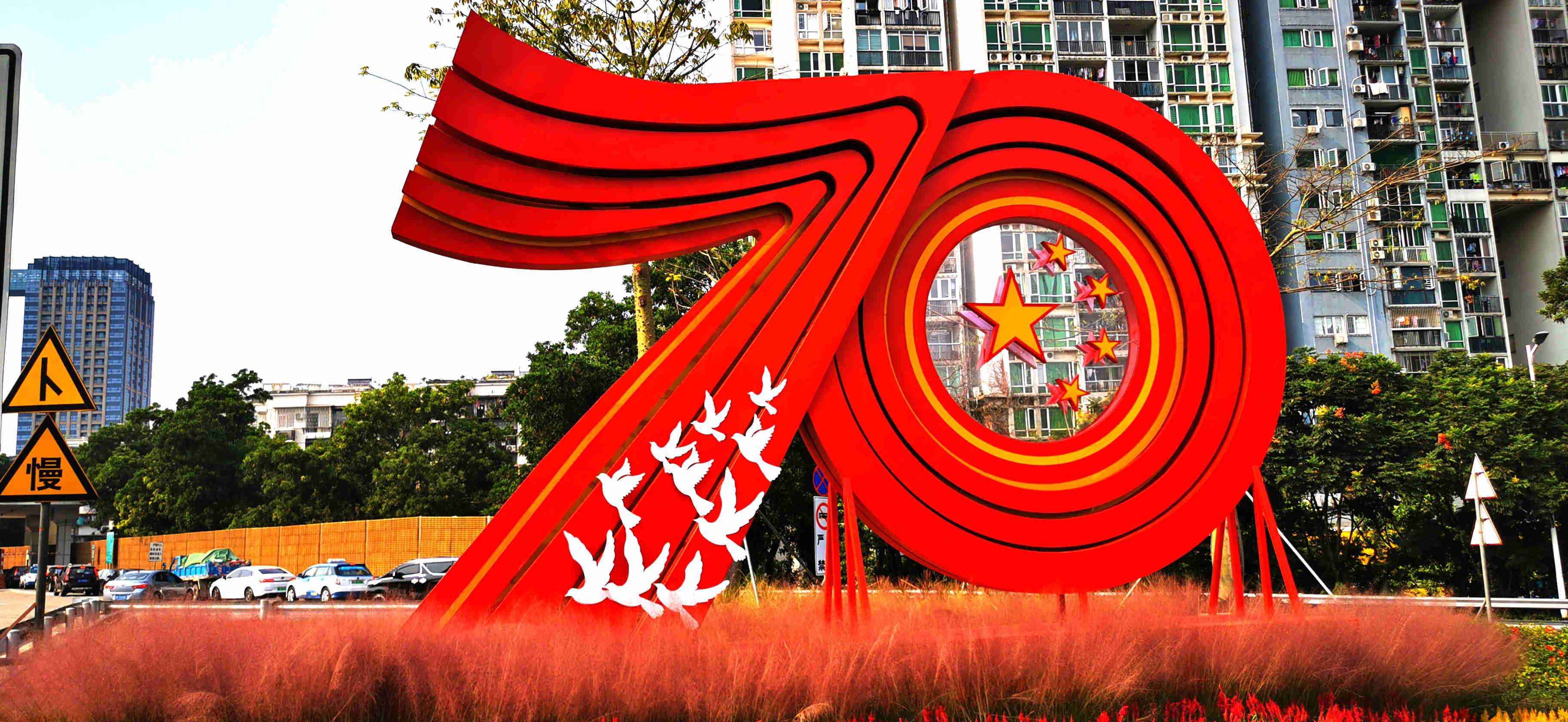據介紹,在福田轄區42條主次幹道和關鍵路段懸掛國旗9310面,同比去年增加懸掛國旗5010面,並在福田口岸、皇崗口岸和深南路平安銀行大廈分別設置三面巨幅國旗。選取中信廣場(深圳市委對面)、市民中心等轄區8個重要區域節點,在醒目位置布置「70」造型主題藝術雕塑;由市民自種自護,在市民花田精心培植「我愛你中國」主題花景。重點鎖定選取市委周邊、益田路等15處重要節點,廣泛種植粉葉金花、醉蝶花、美人蕉和各類時花,打造近四萬平方米國慶主題花境,營造熱烈祥和的節日氣氛。
