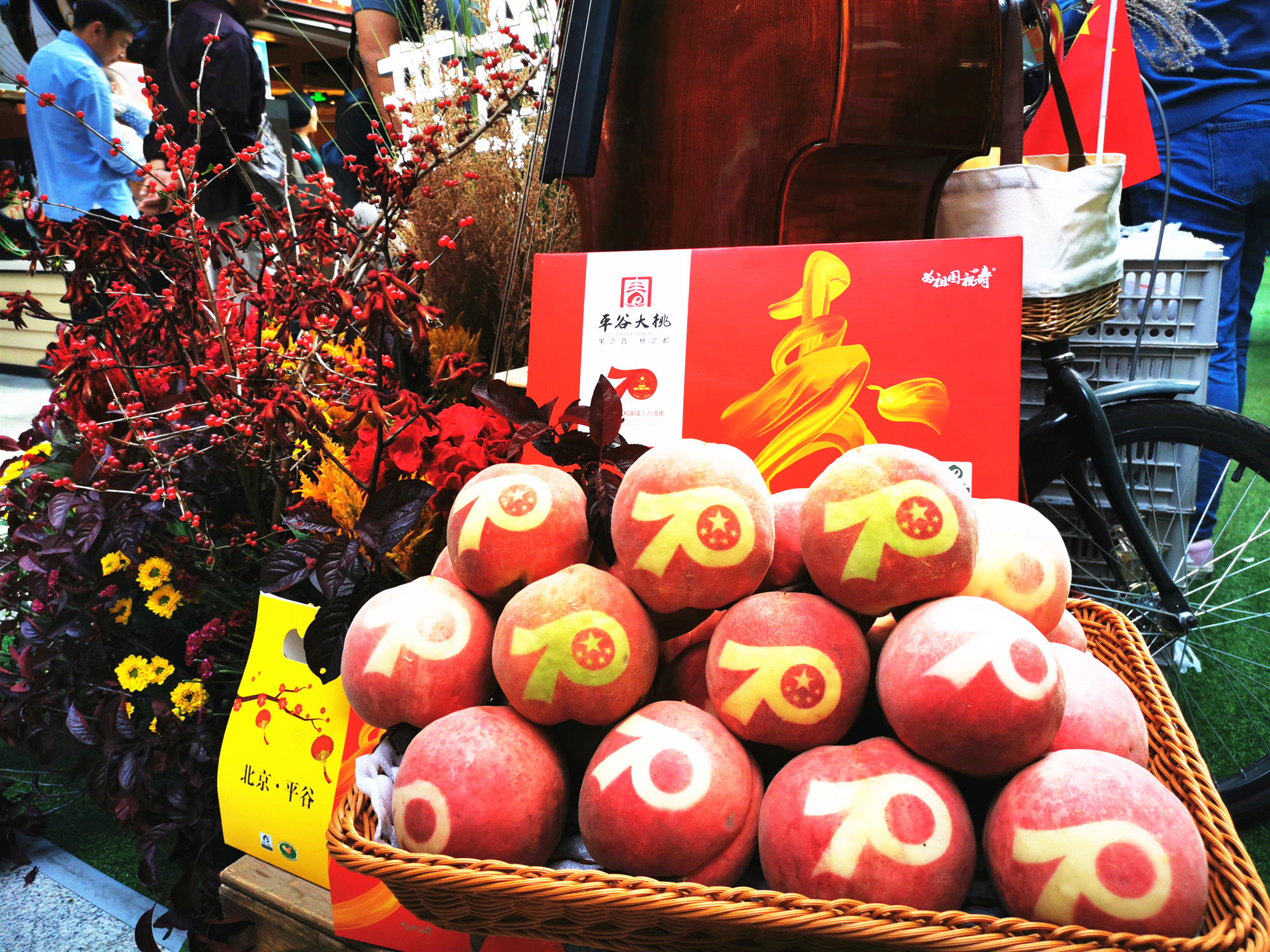 【香港商報網訊】記者 楊凌雲 報導:今年國慶假期,被作為國宴指定用桃的北京平谷「國桃」領銜特色農副產品亮相僑福芳草地商業廣場。布置一新的「平谷桃源集市」里人頭攢動,人們的目光聚焦一個個印着國慶「70」標識,單果重500克以上,甜度13度以上,九五成熟的大桃上。這些桃子是平谷22萬畝大桃中精品中的精品,與曾經獻禮中華人民共和國成立70周年招待會的「平谷國慶禮桃」同一標準生產,此次「國桃」展覽一方面是表達廣大果農和基層群眾熱愛祖國,為國獻禮的自豪感和榮譽感;另一方面也展現出平谷大桃產業發展的勃勃生機和高水平。