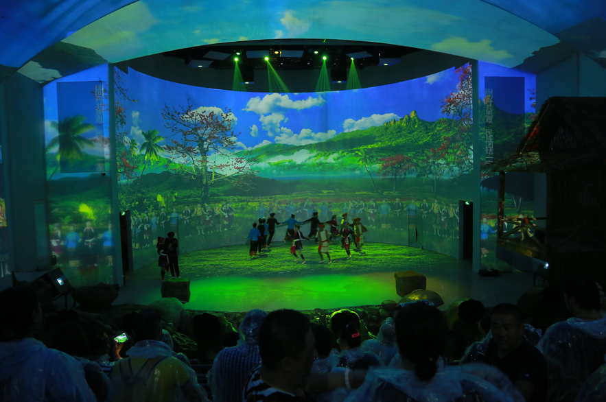 據了解,《風雨情深》情景體驗館位於景區雨林苗寨核心區,耗時將近一年完成,該館占地面積7000平米,總投資2000萬元打造,可同時容納500人同時體驗。檳榔穀景區精心打造的《風雨情深》,既是海南民族文化創新實踐的突破,謳歌民族團結的史詩華章,更是檳榔穀人以赤誠之心,獻給新中國成立70周年的一份禮物。