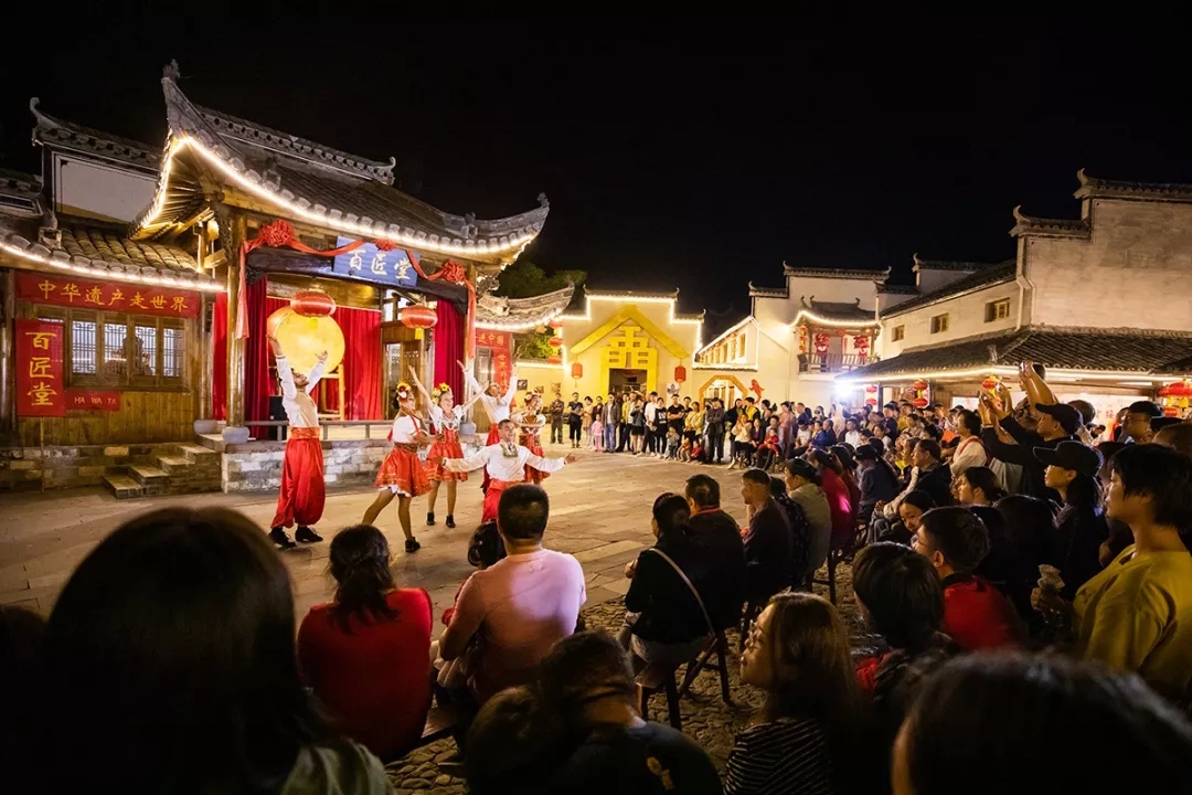 長假以來,黟縣圍繞“古”“休”“紅”三大旅遊特色,舉辦了旅遊、文化、民俗等節慶活動。在古城,“壯麗70年·奮鬥新時代——黟縣慶祝中華人民共和國成立70周年成就展”展出,展現黟縣的發展與變化,遊人和市民絡繹不絕。而燈火闌珊夜遊西遞、百匠堂非遺之窗、拋繡球民俗互動節目、秀裡景區“煙花秀裡—開啟徽州之夜”等表演節目深受遊客歡迎。