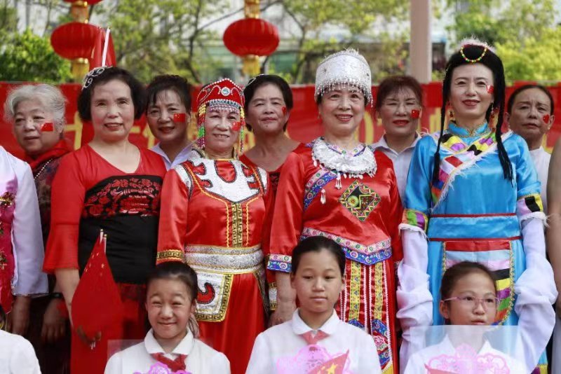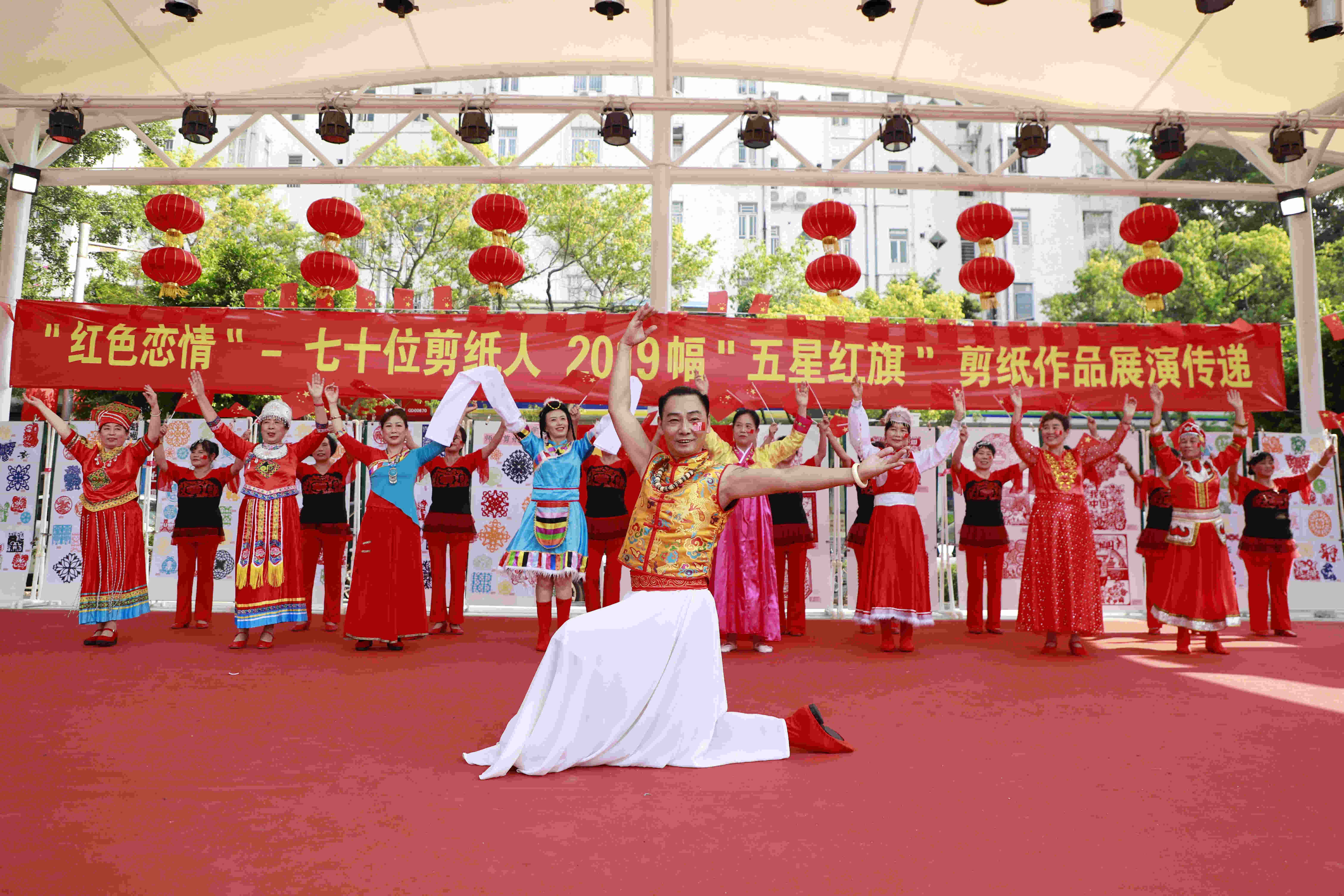 金秋十月,花果飄香。在鬱鬱蔥蔥的蓮花山角下,三十五位剪紙藝人,佩戴紅領巾與三十五位剪紙小學生聯手創作了2019幅“五星紅旗”剪紙作品,他們用這種獨特的“中國底色”的剪紙藝術形式,展現、傳遞,表達對祖國七十華誕由衷地祝福。來自十多個國家的華人華僑以及港澳臺同胞和全國第一位“五星級義工”四代同堂、各界全國勞模、廣大居民朋友共同參與創作出各式各樣精美的“五星紅旗”剪紙作品,傳送給現場近千人和有關機構。