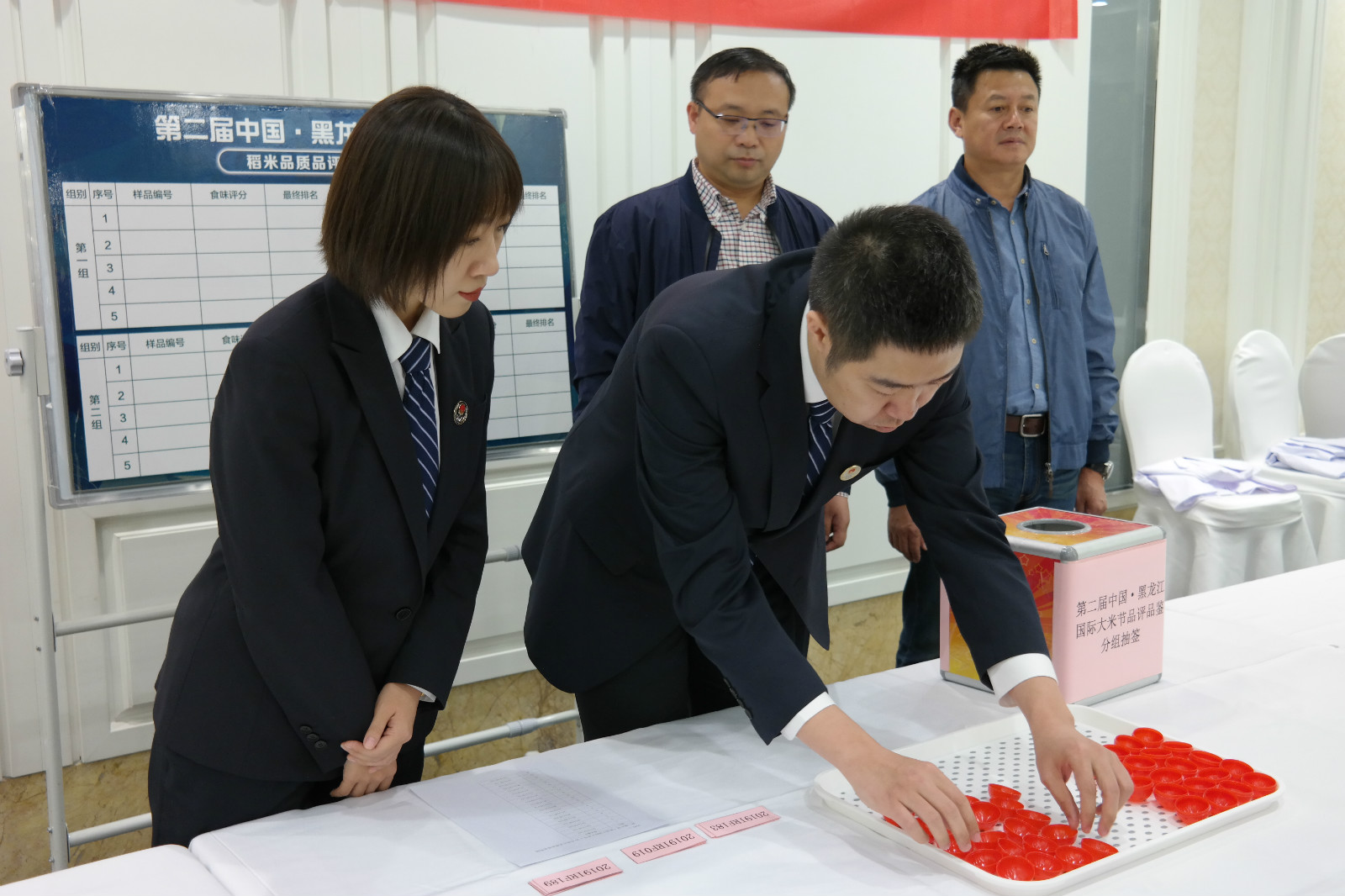本屆大米節共徵集樣品251份,自10月1日以來,在黑龍江省哈爾濱國信公證處指派公證員全程現場監督下,對所檢樣品進行密碼編號,對全部樣品進行DNA指紋檢測驗證品種的真實性,經過前期進行的碾磨質量、理化性狀和食味品質三個方面的篩選,位列前50位的樣品進入本次品評品鑒初評環節。初評環節中,來自省內外科研院(校)的水稻育種和栽培方面的15位專家組成初評專家組,對50份樣品進行了10輪品評品鑒,按食味值評分高低,於10月6日評選出了前30位的樣品作為本屆大米節獲獎樣品,其中21-30位樣品為本屆大米節的「優秀入圍獎」。