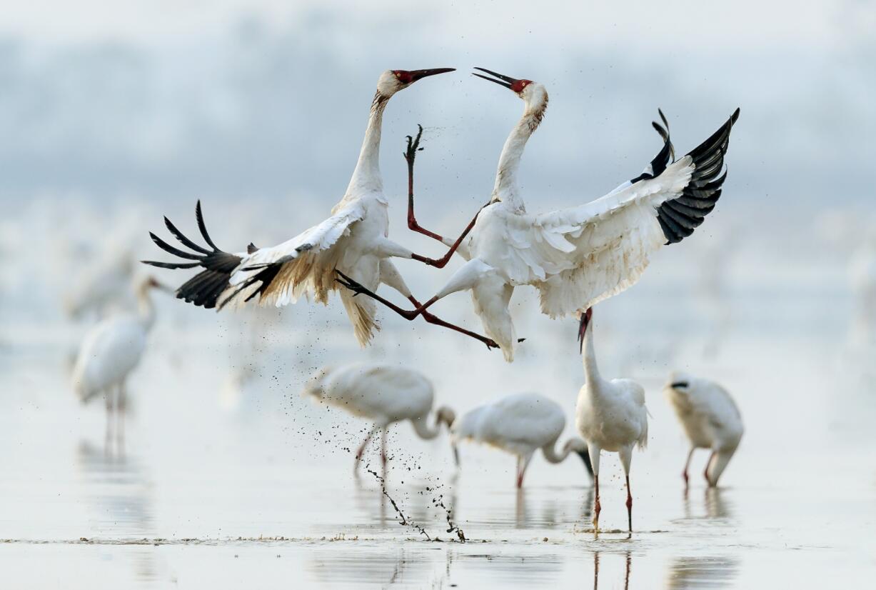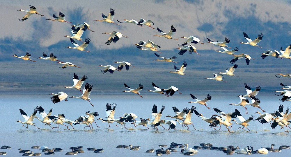同時,沿湖各地區要落實監測制度,持續組織開展環鄱陽湖越冬候鳥同步調查,及時掌握白鶴種群數量。加強與國際鶴類基金會等國際組織,國家鳥類環志中心等科研院所,以及白鶴遷飛停歇地、繁殖地等各方面的橫向交流和科研協作,共同落實好白鶴遷徙網絡合作與分工,分享保護工作經驗,不斷提高保護工作科學化水平。(圖片:周海燕 葉學齡)