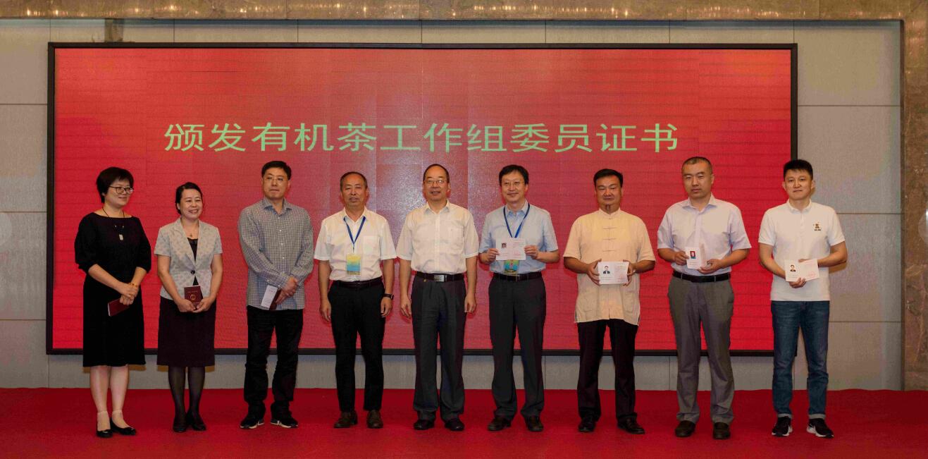 會上,全國茶葉標準化技術委員會主任委員尹禕向有機茶工作組秘書長汪健仁授牌,同時與會領導給有機茶工作組委員頒發了證書。