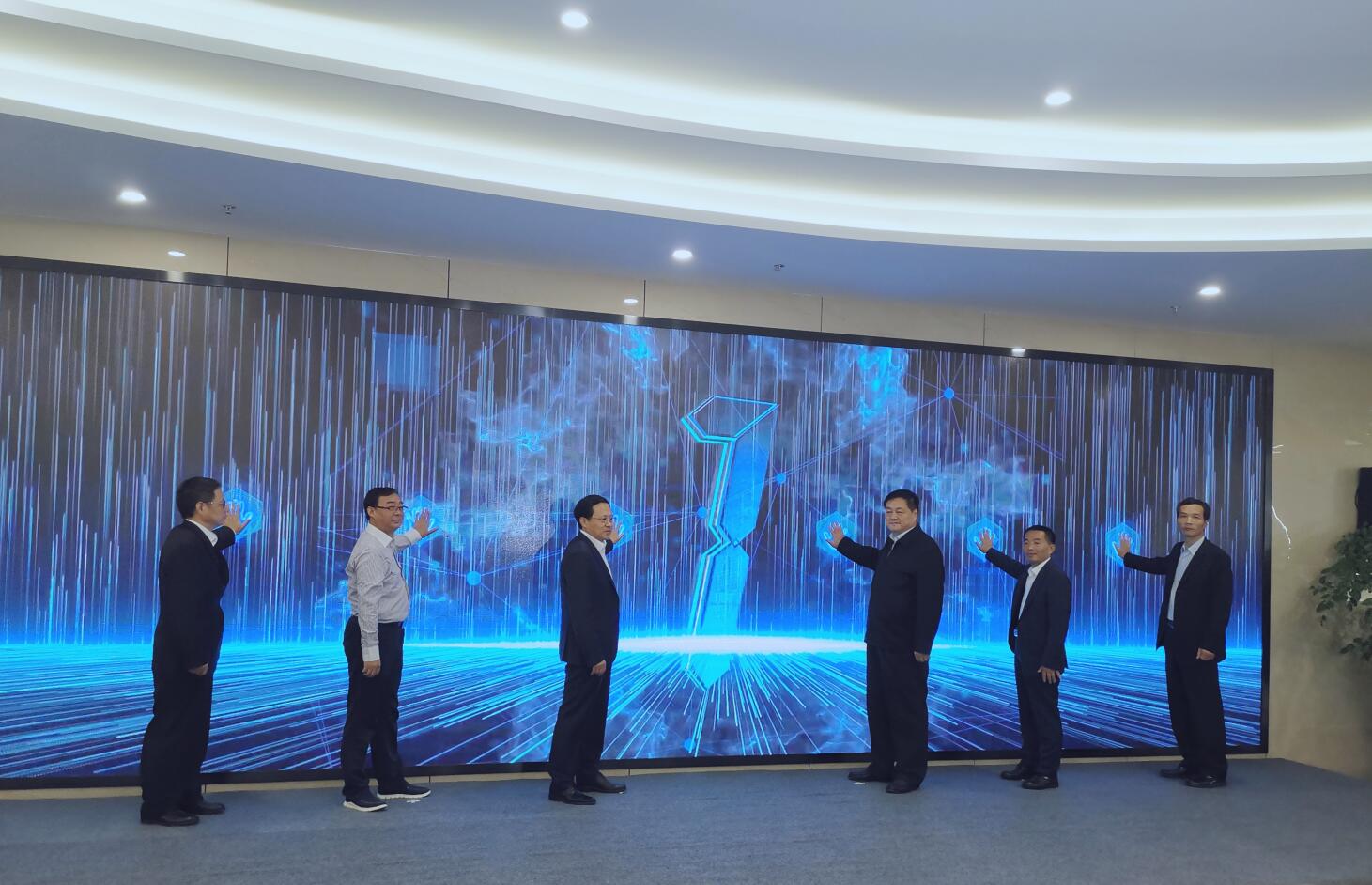 蕪湖市企業服務中心運行啟動儀式現場。左起:蕪湖市經信局長季學敏,市政府秘書長湯德余,安徽省經信廳黨組成員、副廳長吳韋人,蕪湖市委副書記、市政府黨組書記、市長賀懋燮,市政府副市長賀東與安徽省經信廳企業發展服務處處長李曉帆等按手印啟動