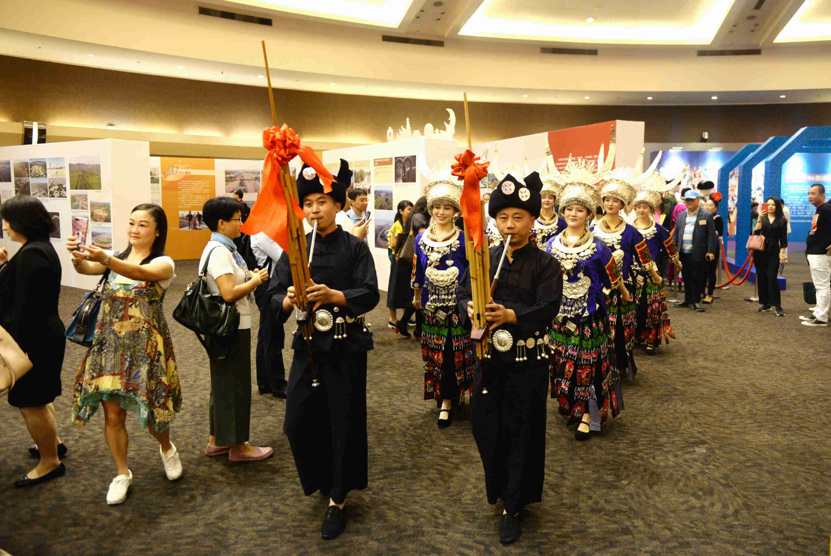 當日,展覽活動現場,來自貴州西江千戶苗寨的苗族舞蹈、苗族歌曲、苗族樂器等歌舞熱情表演,全方位的展示西江千戶苗寨特有的文化和藝術,讓觀眾親身體驗、感受少數民族非物質文化遺產的獨特。(黃慶松 曾艷紅)
