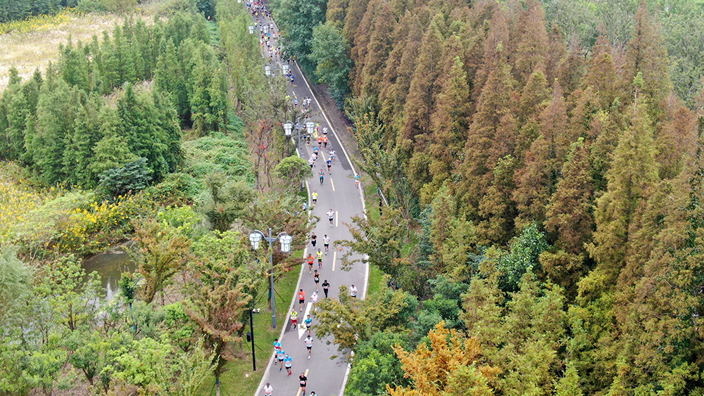 全球跑友在港閘區通呂運河畔生態綠廊賽道暢跑