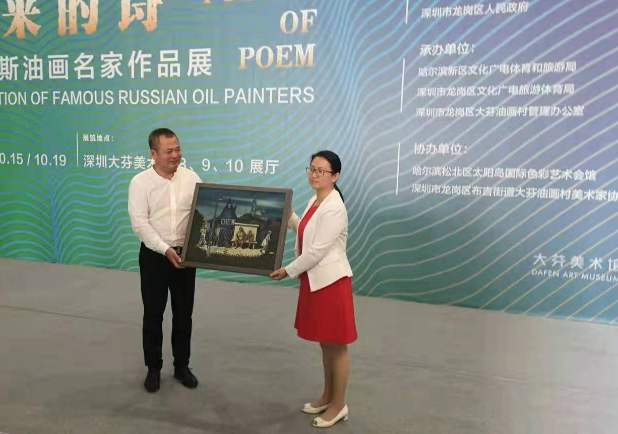 【香港商報網訊】記者 張曉磊 報導:10月15日上午10時,「未來的詩—俄羅斯名家作品展」在深圳龍崗區大芬美術館開幕。本次展覽由哈爾濱新民管理委員會、深圳市龍崗人民政府主辦,哈爾濱新區文化廣電體育和旅遊局、深圳市龍崗區文化廣電旅遊體育局、深圳市龍崗區大芬油畫村管理辦公室承辦,哈爾濱松北區太陽島國際色彩藝術會館、深圳市龍崗區布吉街道大芬油畫村美術家協會協辦。此次展覽旨在讓油畫家和普通的藝術愛好者在欣賞的過程中進行學習,在產生較大學術影響的同時,讓人們深刻感受俄羅斯藝術、人文乃至風土人情的魅力。