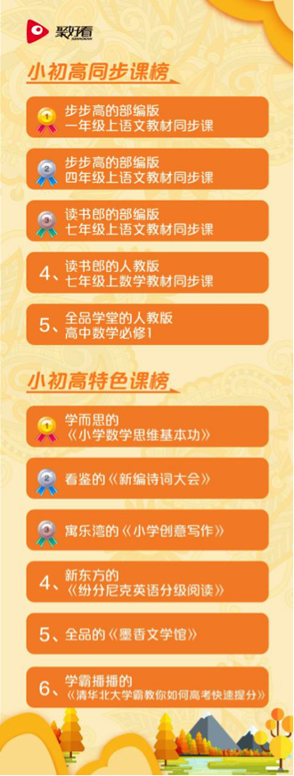 在「9月開學季」這一階段,業界領域的大咖授課更容易獲得青睞,主持人金龜子跨界在線教育領域,成為用戶最喜歡的老師。彩叔帶來的「古詩」系列專題、袁浩親授的「記述文」專題,也都極大程度上滿足了學生們在開學季的「客廳教育」。