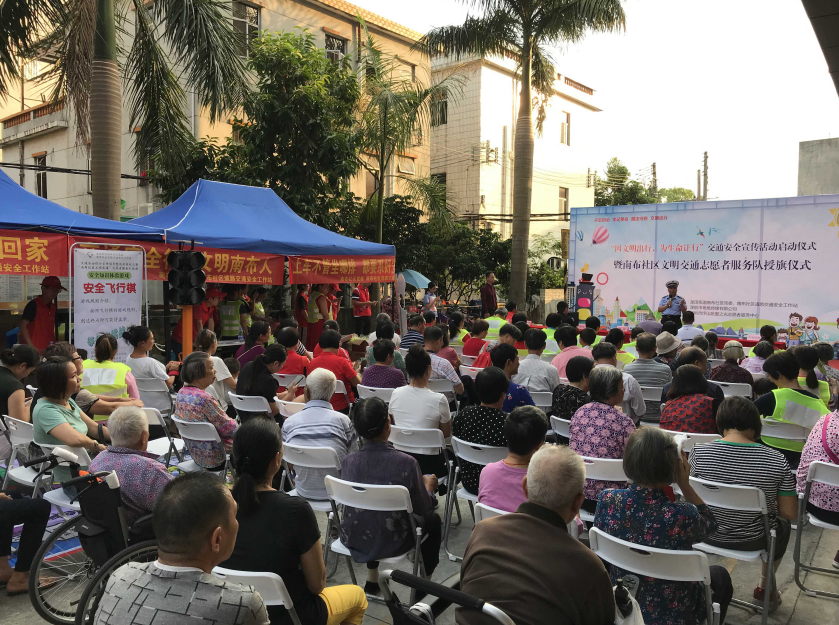 【香港商報網訊】10月17日下午,深圳市坪山交警大隊聯合龍田街道在南布社區黨群服務中心,舉行主題為《因文明出行,為生命讓行》的交通安全綜合宣傳倡導整治啟動儀式暨「南布社區文明交通」志願者服務隊授旗儀式。坪山交警大隊宣傳負責人、龍田街道交安辦宣傳人員、南布社區黨委副書記等出席活動。深圳義工聯及南布社區居民等約120人參加了此次活動。