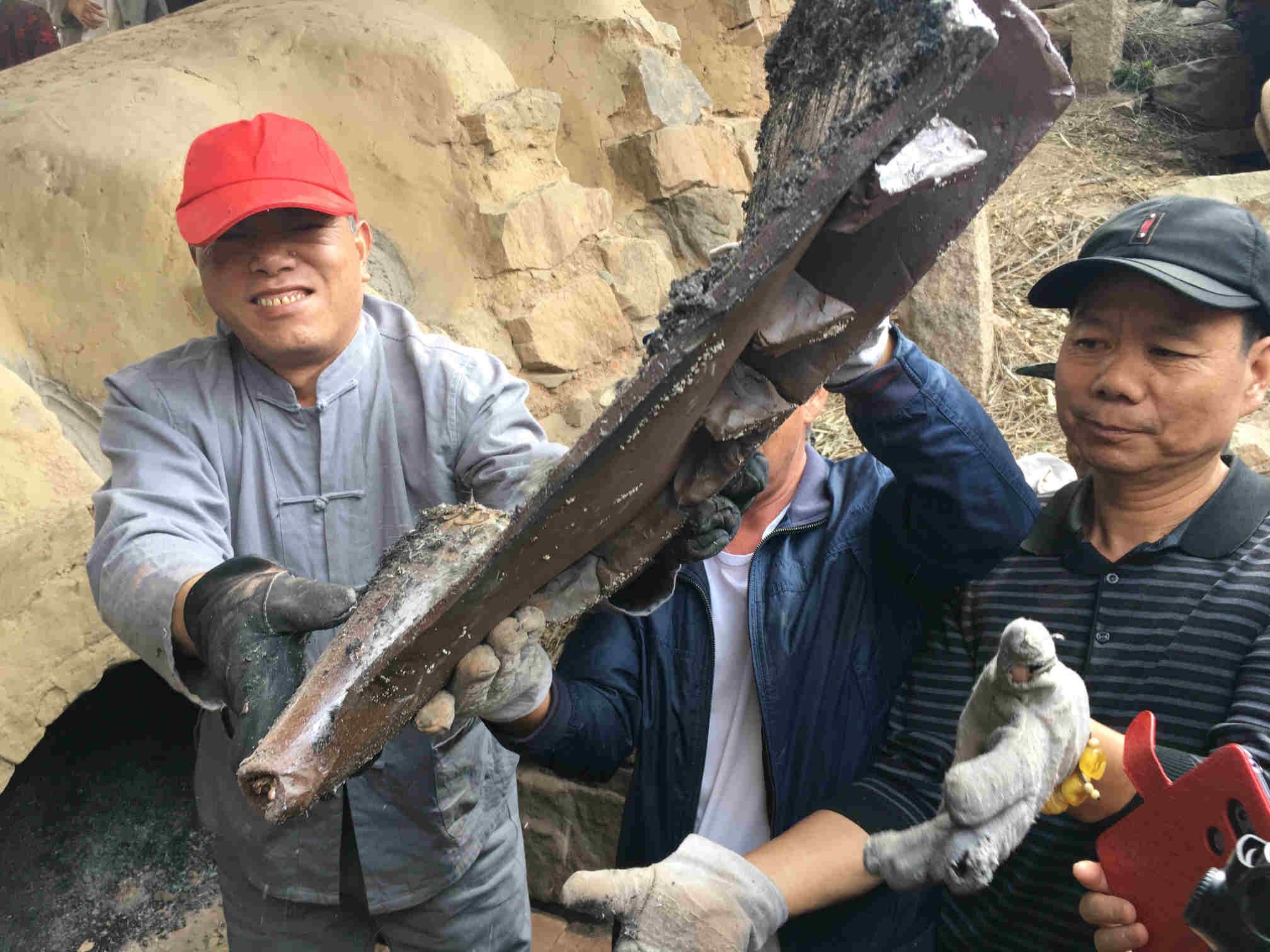 宜興前墅龍窯當天開窯。紫砂壺煉製名窯—前墅龍窯位於宜興丁蜀鎮前墅牛角山上,是迄今為止已有600年歷史的一座活窯。開窯師傅吳永兵說,燒窯是對窯最好的保護,燒窯時每次兩邊各有兩人,以柴火作為燃料,每窯需燒制40小時,「一百個一樣的壺進去,出來一百個都不一樣,這就是我們古人的智慧。」