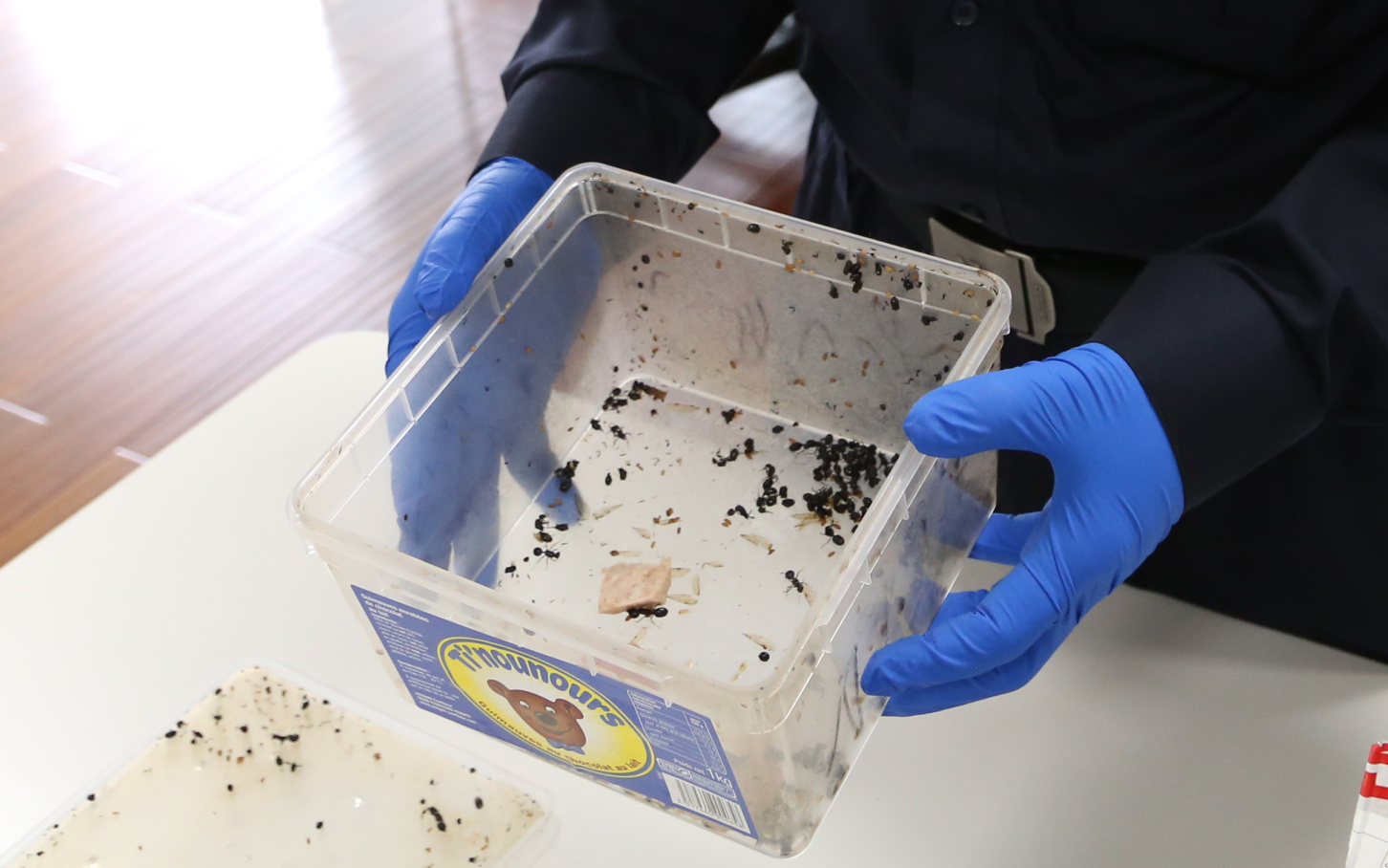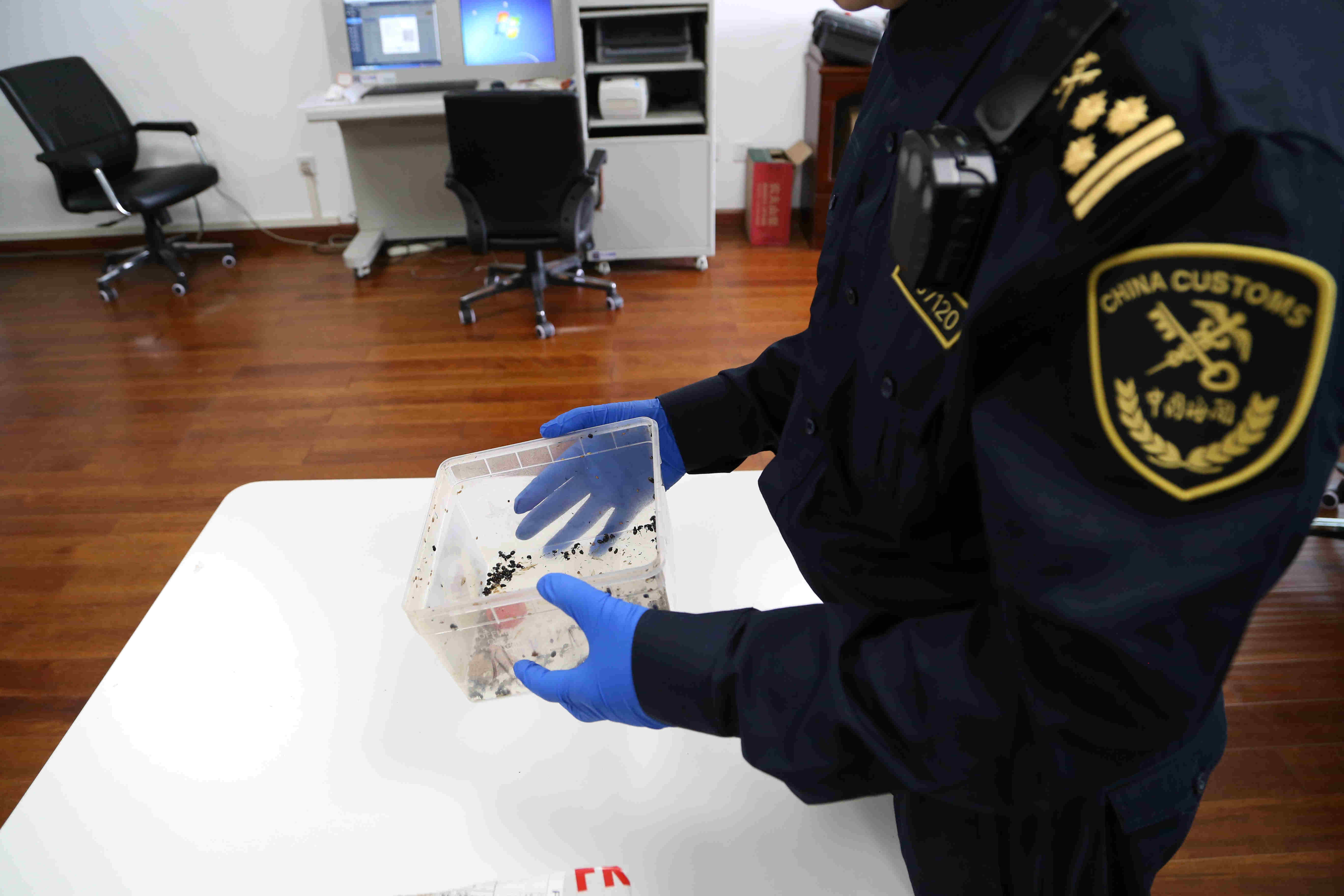 該郵包在通過X光機檢查時,海關工作人員發現其影像異常,內裝物品疑似為大量顆痢☆物體。經開箱查驗,在一個透明塑料培養箱內,裝有活體大型螞蟻115隻,蟻卵30餘粒。其中最大的螞蟻超過10毫米,遠大於國內普通蟻種。