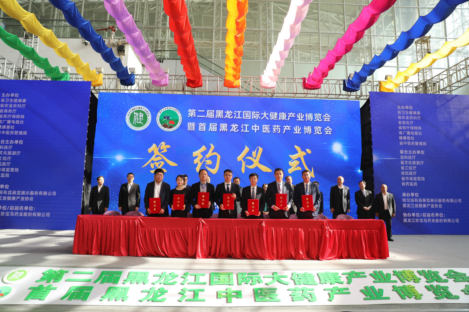 開幕儀式後,黑龍江省中醫藥管理局與阿里健康、雞西市政府與北京華邈葯業有限公司、雙鴨山市人民政府與中國健康實業股份有限公司、伊春市人民政府與中國醫藥黑龍江有限公司、黑龍江省中醫藥管理局與華潤三九集團、黑龍江北草堂中藥材有限責任公司、七台河市政府與黑龍江瑞達葯業有限公司等簽訂合作協議,加快推進龍江中醫藥產業發展。