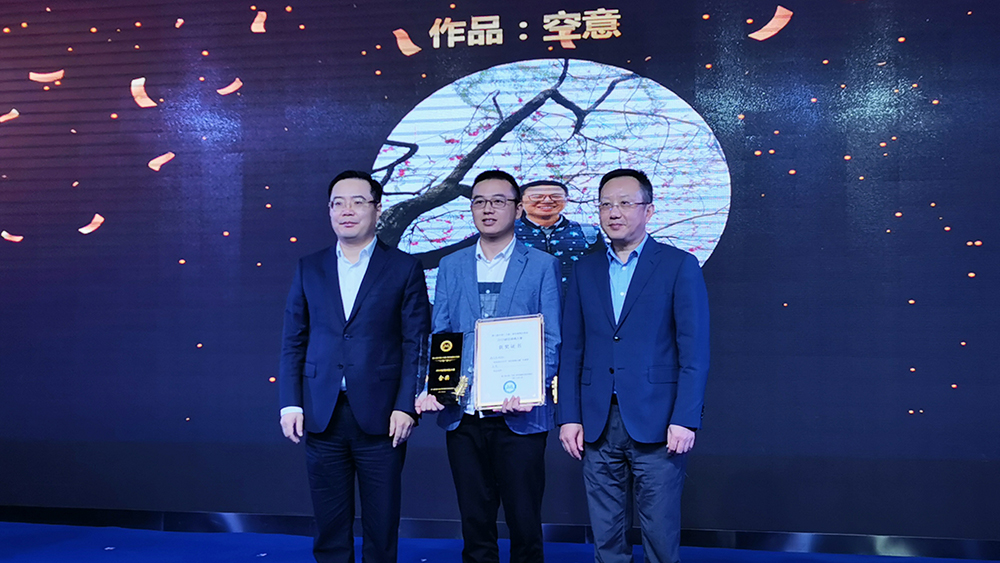 與會嘉賓為畫稿大賽金獎作品《空意》作者金太陽公司謝良虎頒獎