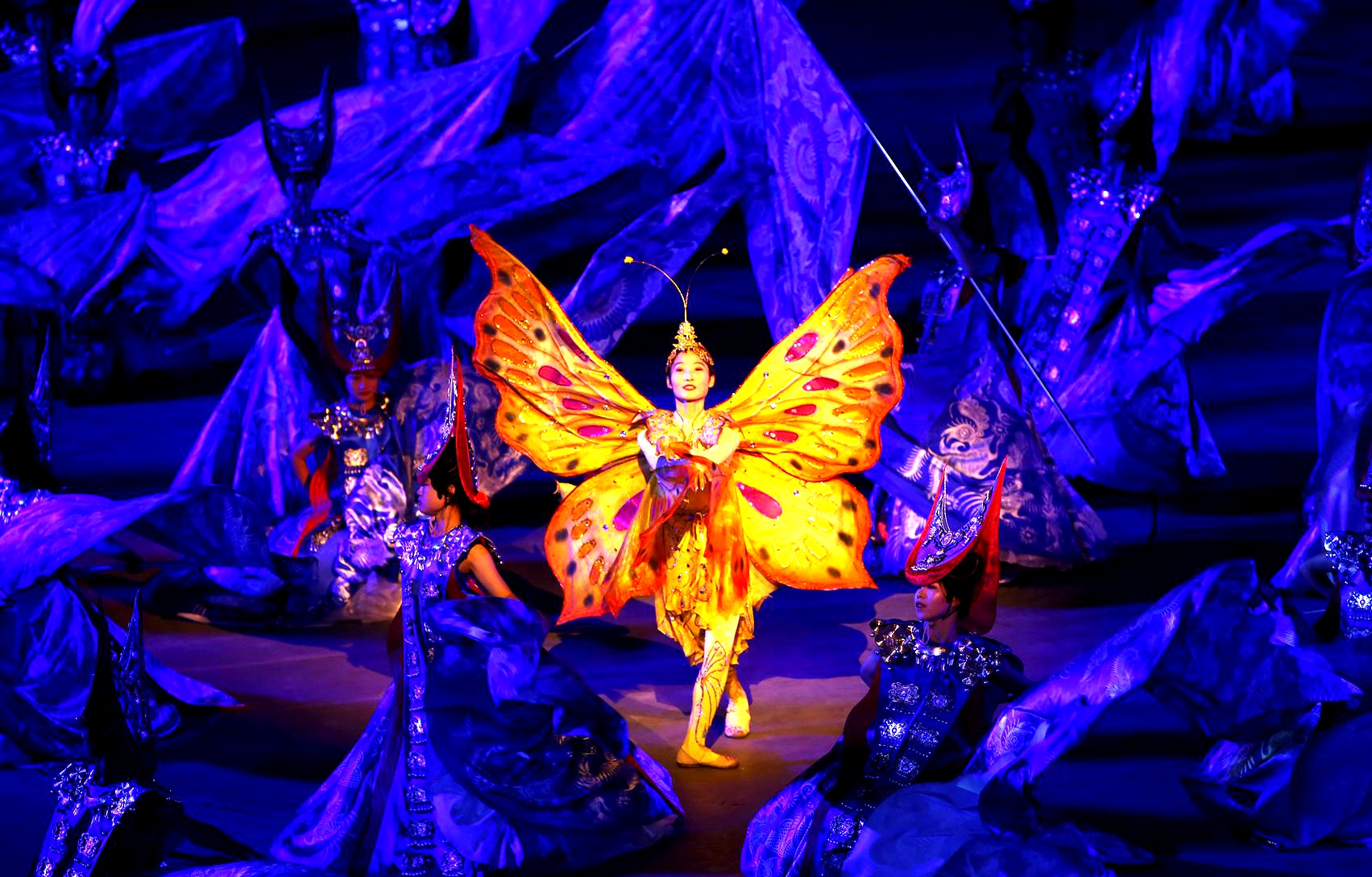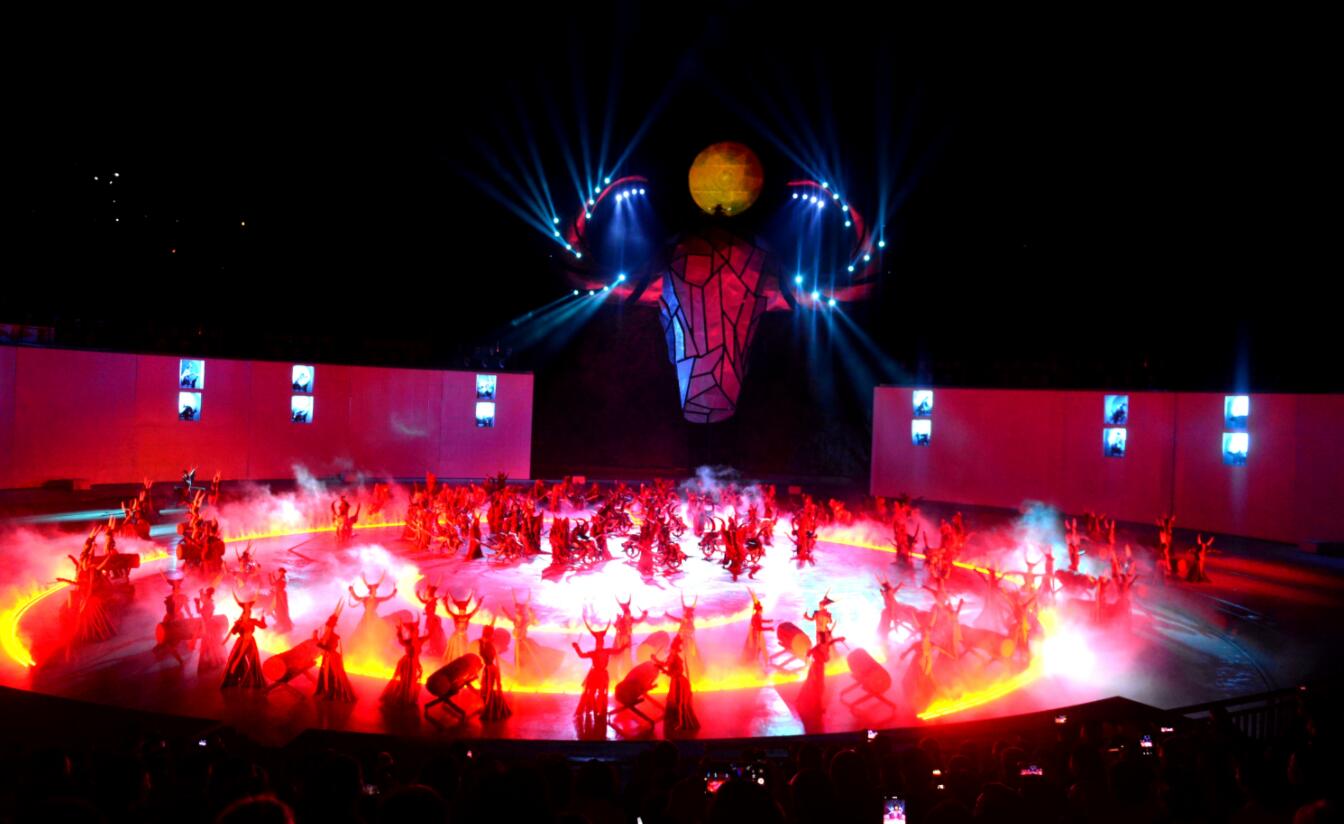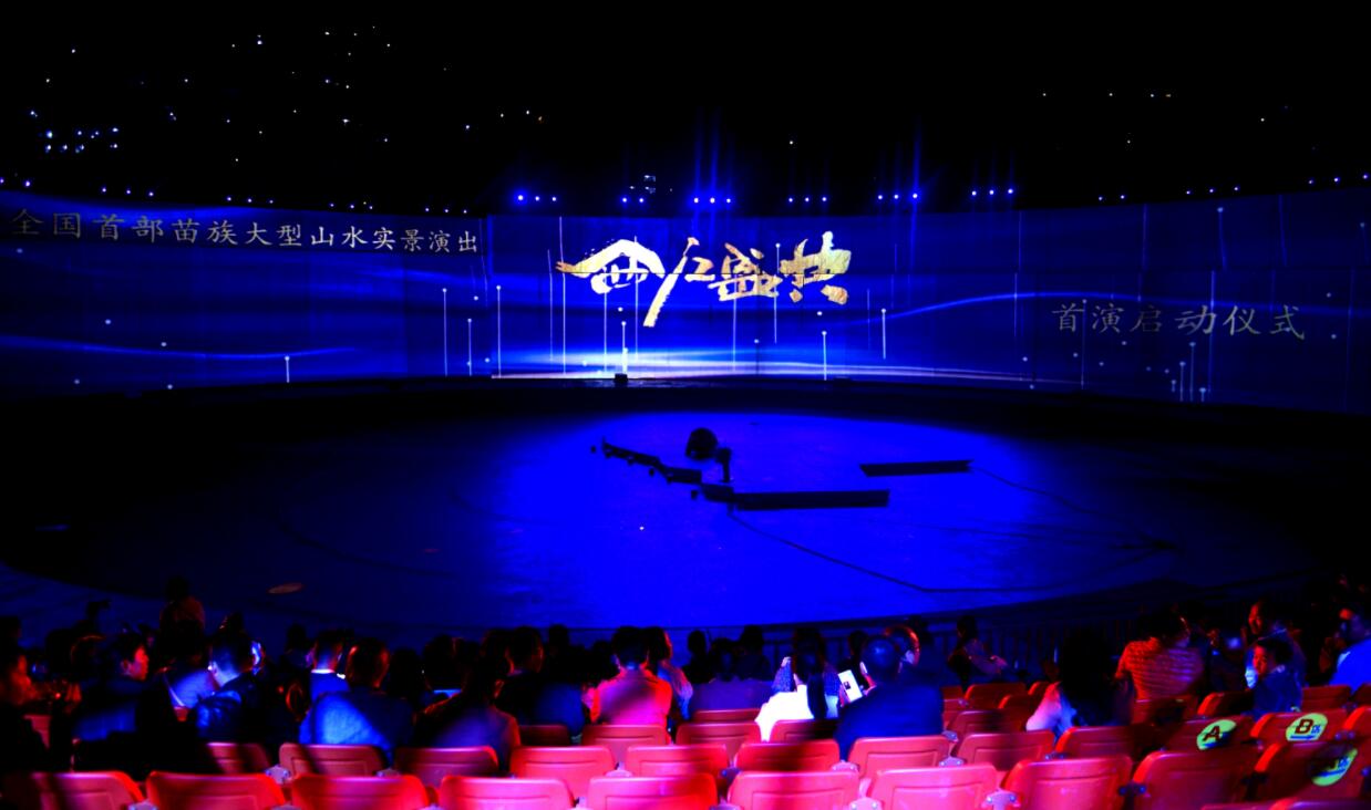 據悉,《西江盛典》演出,亮點多多,一是別具一格的舞台背景:《西江盛典》以山水實景、苗族村落雞鳩苗寨為舞台背景。山體上,懸掛着的巨型牛頭;半山腰,一架紡織機,織出一條銀河之路散落山間;山腳下,聳立着壯觀的四面銅鼓群;村落中,遍布着25盞蓮花燈;清河邊的大水車旁,是有着600多年歷史的獨特建築「水上糧倉」。此等絕美景色,只可在大塘苗寨《西江盛典》才可一見。二是悠久厚重的苗族文化,《西江盛典》是以厚重的地方特色和文化積澱作為項目定位,融入了眾多苗族歷史典故、民間傳說、民風民俗和人文景觀,展現了一段氣貫長虹的悲壯故事,一派歡天喜地的和諧景象。三是別具特色的演出形式:《西江盛典》開創了貴州大型實景演出的先例,作為國內首台大型苗族文化實景劇,它以傳統苗寨為實景舞台,以村民生產生活用品為舞台道具,結合大塘景區的地貌山形,構成了舞台劇場,真實再現了原生態。四是高新科技與現代文化融合:《西江盛典》運用高新科技,將苗族的地域特色以及民族文化等進行全新創作組合。並引進現代高科技技術,資建造了目前全省最大規模的環境藝術燈光工程及視覺、煙霧效果等工程,在6800㎡的舞台上,360度旋轉舞台,呈現出震撼心弦、如詩如夢的視覺效果。(黃慶松)