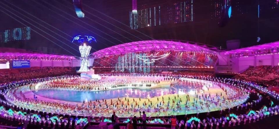 此外,在節目《和平之師》尾聲,表演者手拿象徵「和平之火」的全柔性屏火炬震撼亮相,緊隨其後的節目《新的天地》中,身穿宇航服的表演者手拿全柔性屏火炬「漫步」在舞台的上空,明亮的聖火與現場的點點熒光交相輝映,贏得了現場陣陣掌聲。