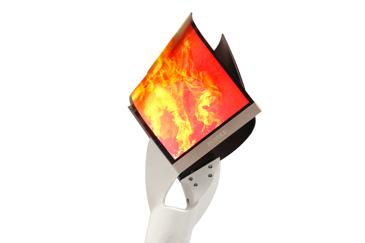 該全柔性屏火炬由柔宇科技自主研發創新,在其一端嵌入了柔宇在全球範圍內率先量產的全柔性顯示屏,可全方位清晰展示自定義畫面。當熊熊燃燒的聖火綻放在薄如蟬翼的全柔性顯示屏上,「體育傳友誼,交流築和平」的軍運會精神瞬間被點燃。
