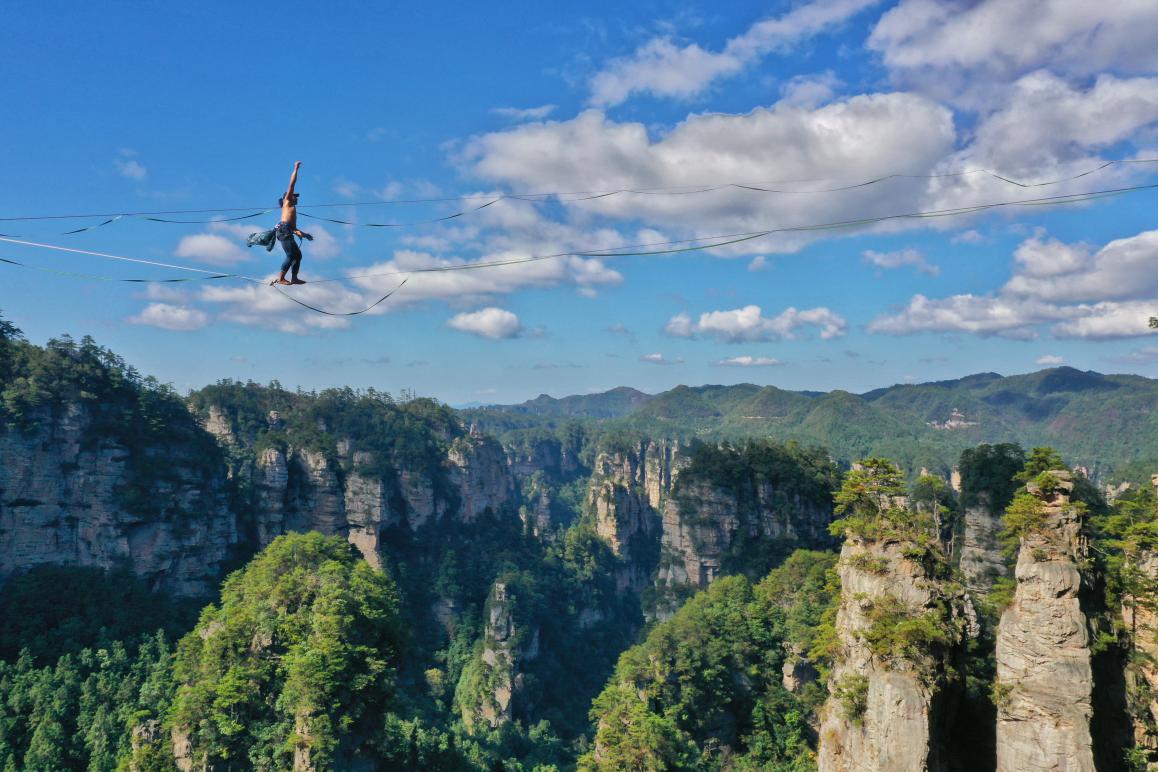 【香港商報網訊】10月20日,2019年湖南武陵源徒步大會暨張家界黃石寨高空扁帶對抗賽在國家AAAAA級旅遊景區張家界武陵源黃石寨落幕。800名徒步運動愛好者齊聚於此,共同體驗這場秋日戶外徒步之旅,更有多名扁帶大師到場助陣,上演精彩絕倫的高空扁帶大秀。