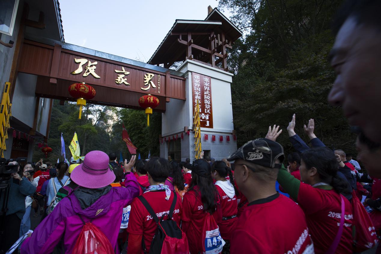 作為國家重點風景名勝區,武陵源區被稱為“自然的迷宮”“地質的博物館”“森林的王國”“植物的百花園"“野生動物的樂園”……800餘名徒步選手們排成長隊自張家界武陵源景區南門出發,形成一道靚麗的風景線,賽道沿途經過了幽靜異常的金鞭溪、蜿轉曲折的水繞四門等著名景點。