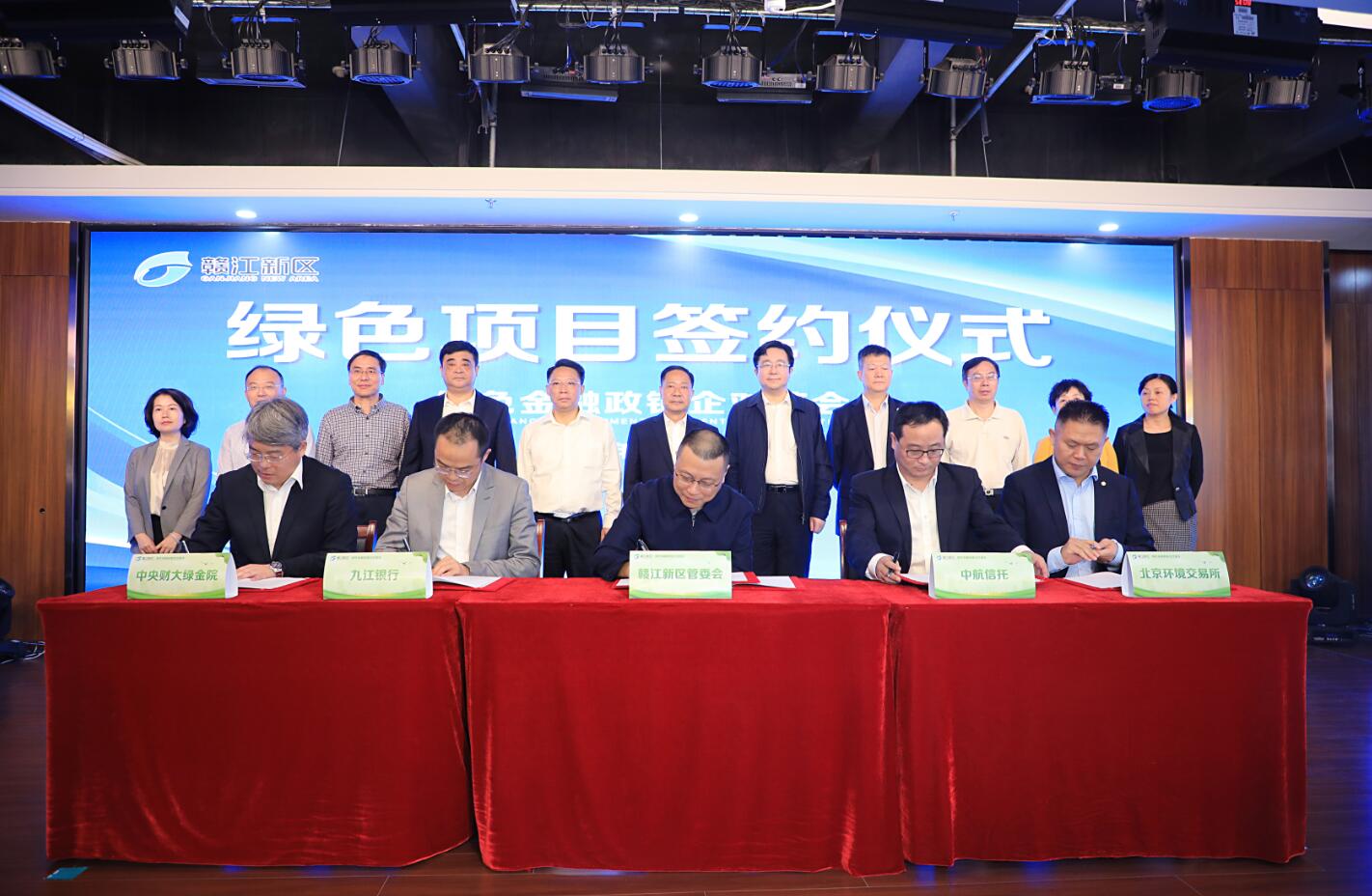 江西省委常委、贛江新區黨工委書記殷美根出席會議,贛江新區黨工委副書記、管委會主任劉建洋出席會議並致辭,贛江新區黨工委專職副書記占勇主持會議。江西省地方金融監管局局長韋秀長、贛江新區常務副主任肖玉文、中航信託黨委書記、董事長姚江濤,北京環境交易所總裁梅德文出席會議。