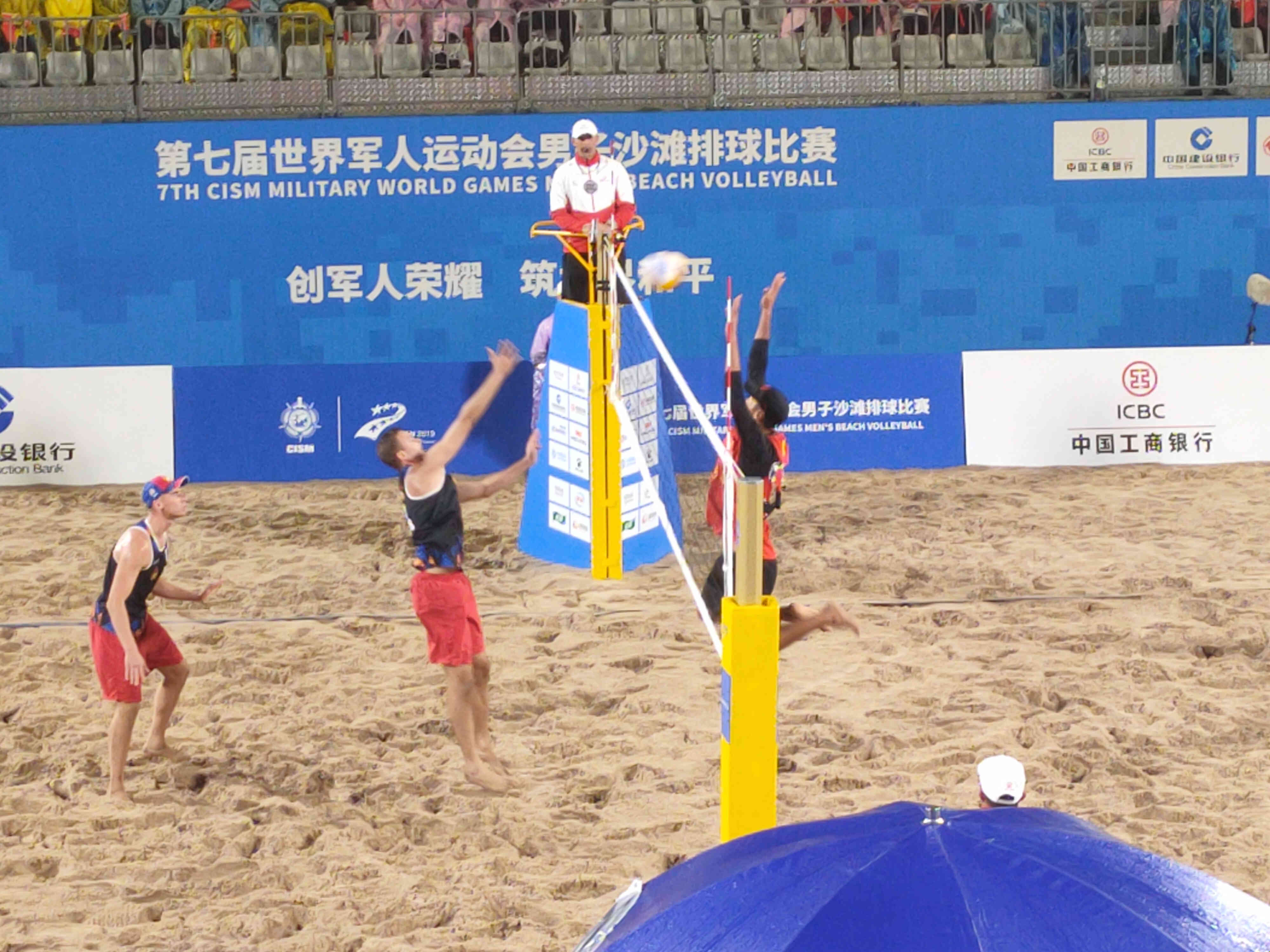 【香港商報網訊】22日,第七屆世界軍人運動會男子沙灘排球項目小組賽迎來第二個比賽日,來自中國、德國、巴西、斯里蘭卡、尼泊爾、瑞士、伊朗、拉脫維亞、阿曼、俄羅斯的24位運動員在武漢青山區沙灘排球館展開了第七屆軍運會男子沙灘排球項目16強入圍資格的爭奪。