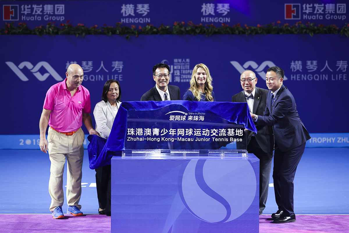 開幕式上,該賽事全球形象大使格拉芙驚喜現身,與中國球迷四度相約橫琴國際網球中心,並為珠港澳青少年網球運動交流基地揭牌。