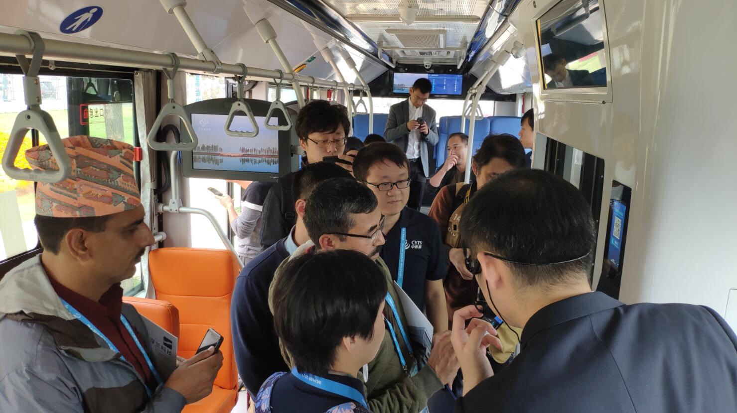 來自尼泊爾的新聞官Iswar shreshta坐上了由深藍科技研發的無人公交車——熊貓智能公交車,其後接受記者採訪時說「這是他第一次乘坐無人駕駛汽車,覺得非常好,行駛很平穩。」並表示對於無人駕駛技術是否會在自己國家運用,覺得目前無法想像。