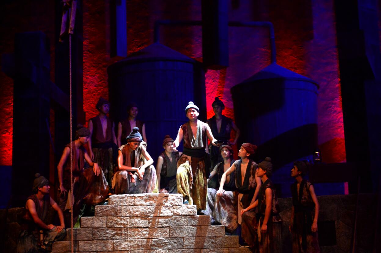 AB過道是從A廳到B廳必經的一條道。雖然不是單獨的一個表演廳,但過道兩邊依然是非常有看點的表演現場。為了讓觀眾更真切感受釀酒的過程,過道兩邊一邊播放由實地取材拍攝製作的釀酒影像,一邊是真實工人表演熱火朝天的生產現場,綜合呈現戲劇表演場景。