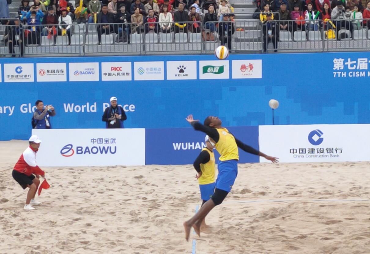 第一局比賽開始,巴西隊接連發球失誤,德國隊以3分優勢領先,但隨後找回狀態的巴西隊逐漸將比分扳平,實現反超,最終巴西隊以21比18領先3分率先拿下第一局比賽勝利。在第二局比賽中,巴西隊延續上一局的發球戰術,巴西隊2號選手儒尼奧爾通過角度刁鑽,力量極大的大力發球接連得分,最終巴西隊以21比15的大比分優勢拿下整場比賽勝利,摘得第七屆世界軍人運動會男子沙灘排球項目金牌,第七屆世界軍人運動會男子沙灘排球項目最終以巴西獲得冠軍,德國與阿曼分別位列亞軍、季軍為結果圓滿結束。(吳超群 張迪)