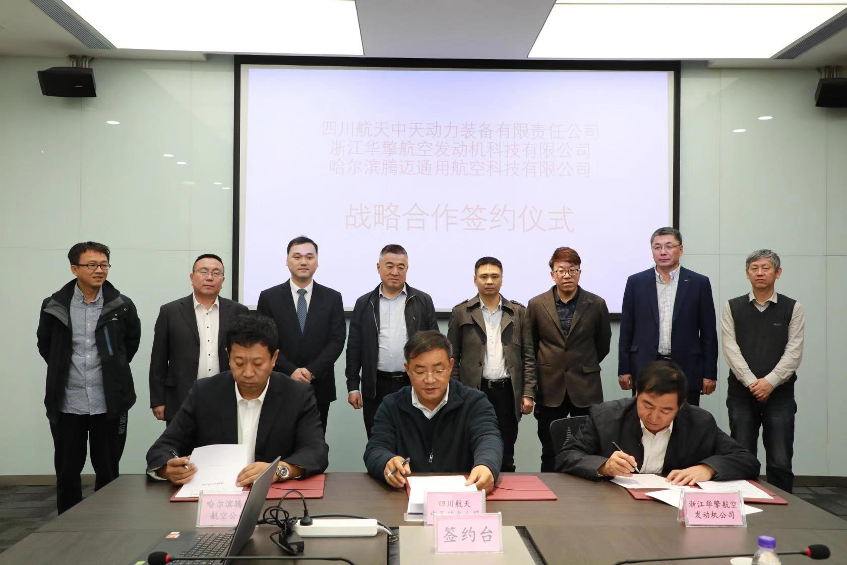 【香港商報網訊】10月27日,四川航天中天動力裝備有限責任公司(以下簡稱「中天動力公司」)、浙江華擎航空發動機科技有限公司(以下簡稱「華擎公司」)和哈爾濱騰邁通用航空科技有限公司(以下簡稱「騰邁公司」)在哈平房區舉行簽約儀式,三家公司的戰略合作簽署具有里程碑式意義,意味着在國內小型渦噴、渦扇發動機及相關產品領域,將邁入新時代,小型渦噴渦扇發動機將達到國際先進,國內領先的水平。相關型號的研製開發和生產將落戶哈平房區。