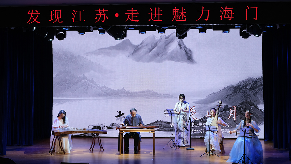 華燈初上,外國友人前往海門江海小劇院欣賞了由中國當代著名斫琴家,江蘇省非物質文化遺產梅庵琴派傳承人倪詩韻帶來的古琴名曲欣賞。線條古樸、外形秀氣的古琴,和着細膩低沉、空靈幽遠的琴音,讓外國友人第一次親身感受到中國傳統高雅藝術的魅力。吳儂軟語的海門山歌則以優美樸實,清新流暢的曲調再次讓國際友人感受到鮮明的地域特色,讓中外嘉賓彷彿看到千百年來生活在這片熱土上的人們辛勤勞作、幸福生活的情景,以及追江趕海,開拓奮進的精神面貌。