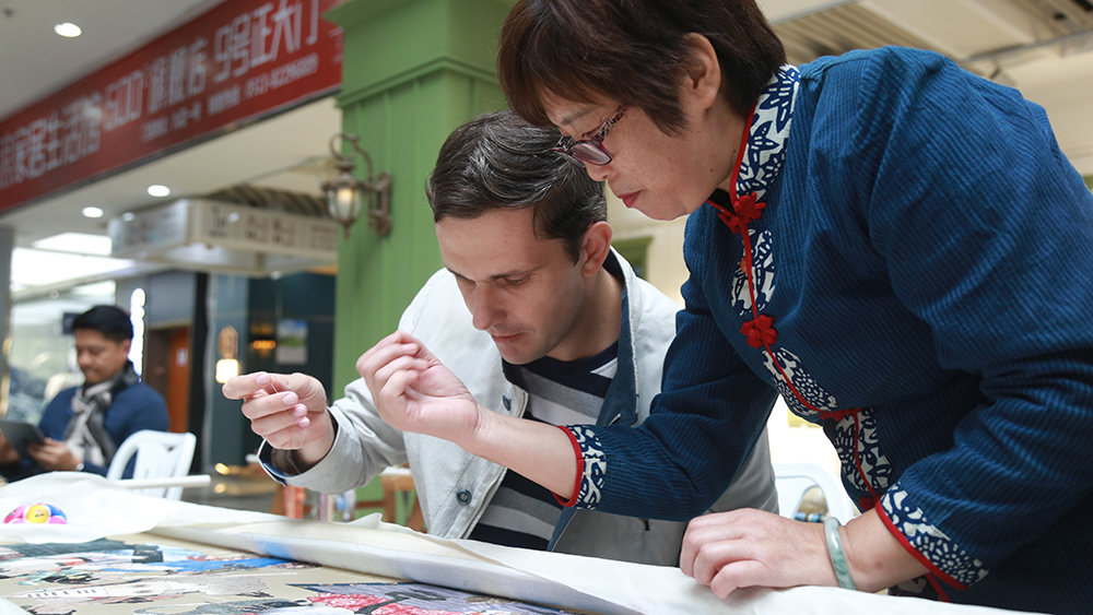 外國友人體驗中國傳統刺繡