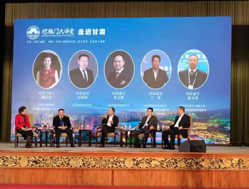 高峰對話環節,在全國工商聯執委、四川鑫電電纜有限公司董事長陳素清的主持下,中大建設集團董事長彭國祿、首航節能集團副董事長黃文博、甘肅省民間商會副會長、大禹節水集團股份有限公司副董事長王沖以及甘肅省甘南州工商聯主席、甘肅華羚實業集團有限公司董事長敏文祥,就“民營企業如何進行高質量的發展”等問題展開討論,為甘肅特色產業的發展獻計獻策。