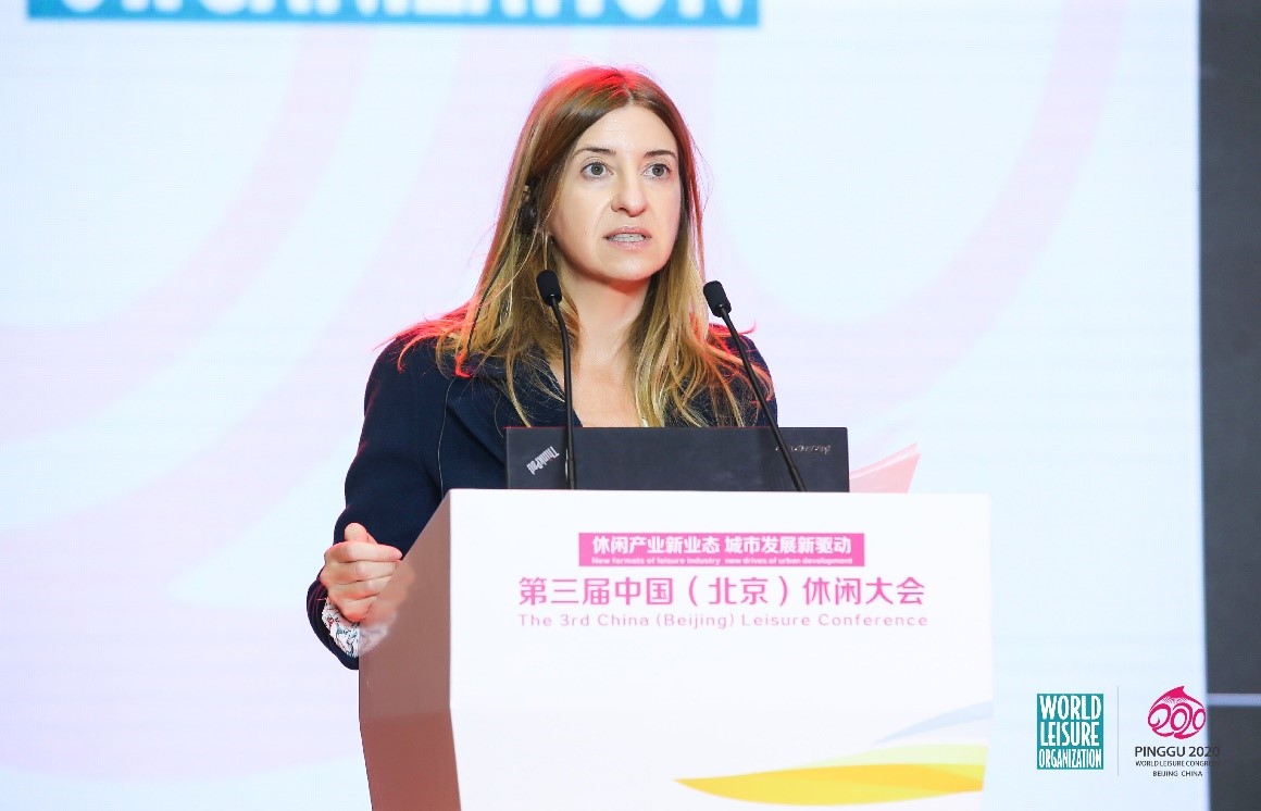 世界休閑組織COO克里斯蒂娜在主論壇發表主旨演講