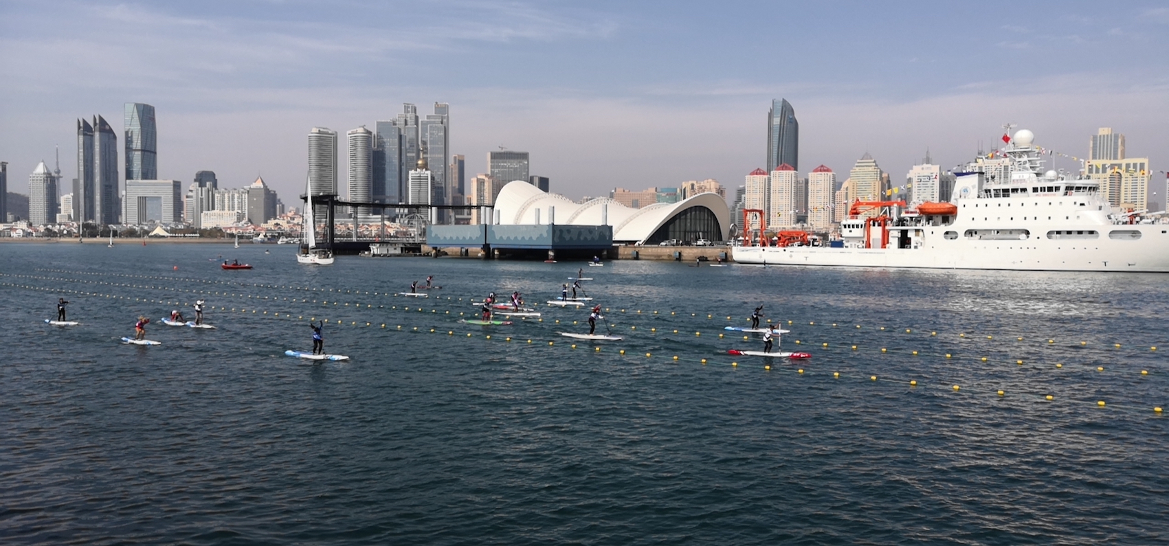 閉幕式暨頒獎儀式在青島奧帆中心舉行。國際皮划艇聯合會槳板委員會主席拉米·祖爾,青島市體育局黨組書記、局長、體育總會主席車景華等為獲獎運動員頒獎。