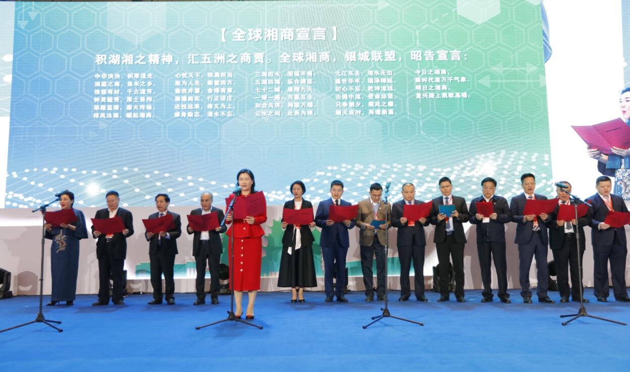 與會湘商當日集體宣讀了《新時代湘商宣言》,通過全球湘商聯盟的凝聚帶動,提升全球湖南商會的凝聚力影響力競爭力,為建設富饒美麗幸福新湖南貢獻智慧和力量。(圖片提供 翟順利)