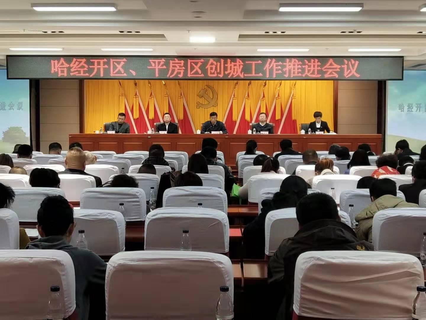 【香港商報網訊】10月30日下午,哈經開區、平房區在區政府第二辦公區召開創城工作推進會議,貫徹落實市文明委擴大會議暨創城工作推進會議精神,部署迎接全國文明城市測評檢查工作。會議由哈經開區管委會主任、平房區政府區長宋博岩同志主持,市委常委、哈經開區黨工委書記、平房區委書記劉興閣,部分區級領導,區直部門、各鎮街主要領導及駐區單位主要負責人,各社區書記,區創城督導組全體成員100餘人參加了會議。