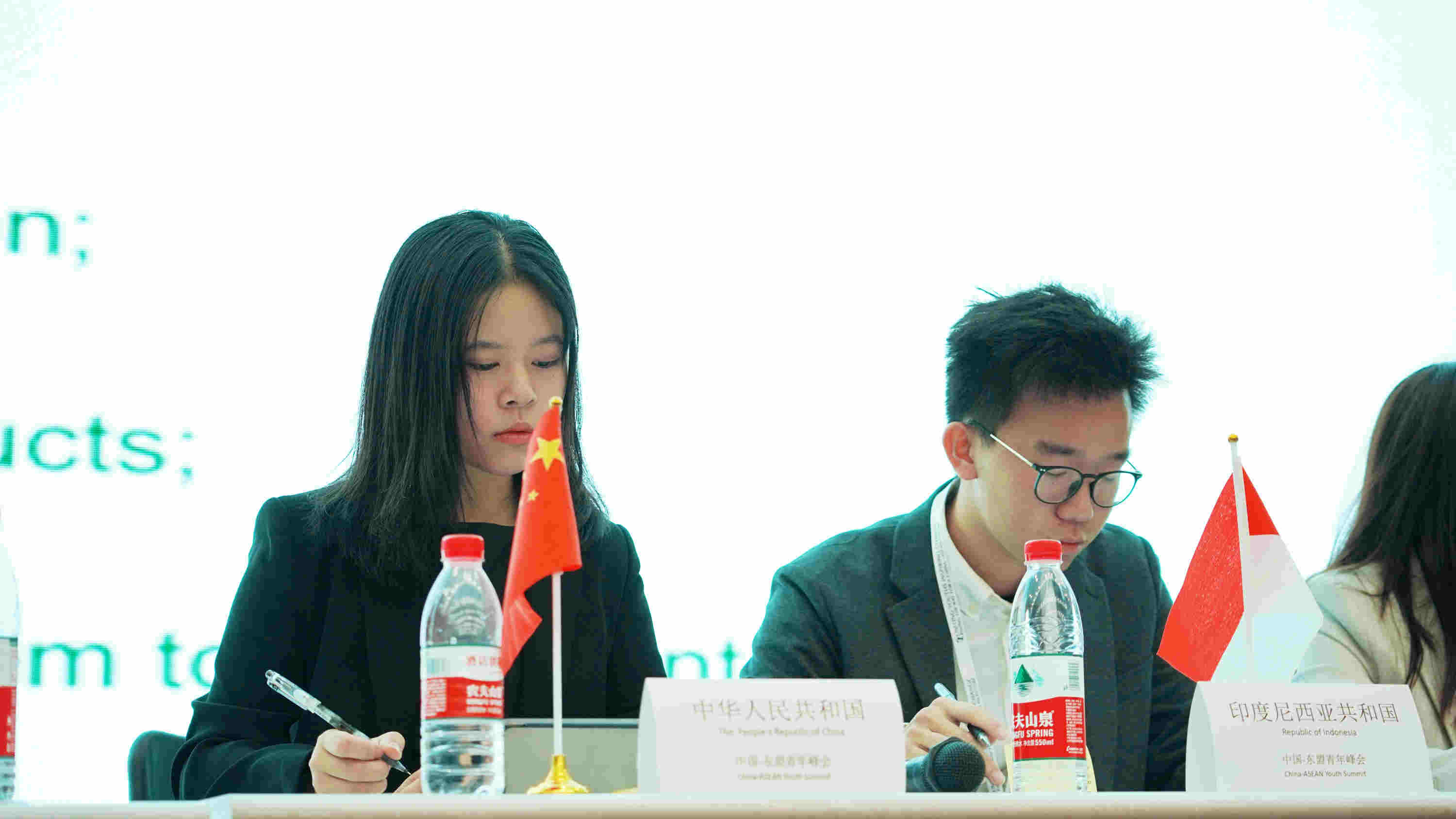 《中國-東盟青年宣言》起草與投票大會現場,鄭笛文同學作為中國代表對宣言內容進行表決