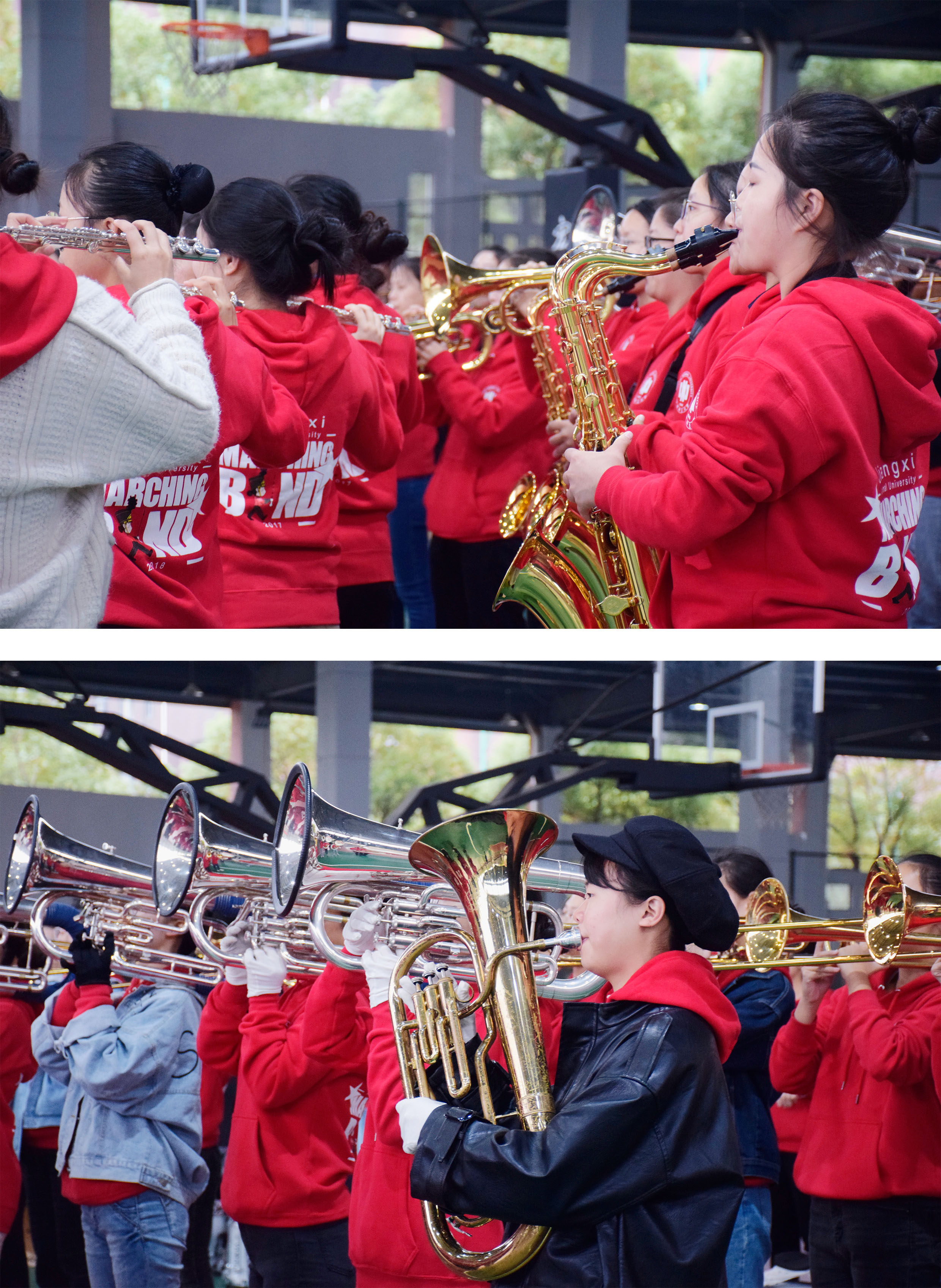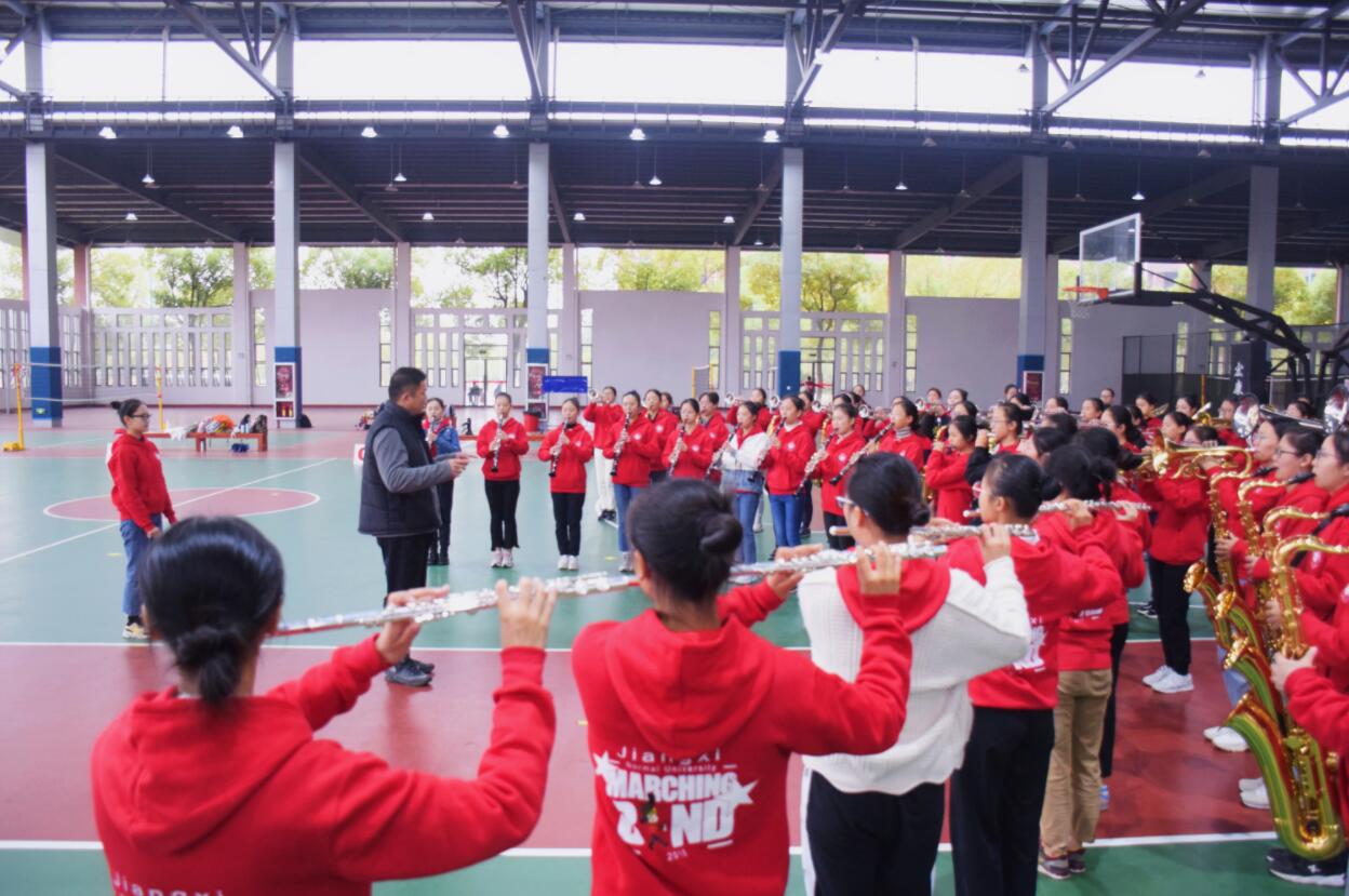 據了解,江西師範大學女子軍樂團並不是掛靠在團委,而是直接掛靠在師大武裝部,對軍樂團的管理也是軍事化的。樂團指導老師尹松十年來一直負責軍樂團的指導工作,對於維繫一個200多人的軍樂團,既覺得辛苦,又充滿幹勁。「我們這次參加國際軍樂節的亮點是行進表演,除了11月3日在江西師範大學瑤湖體育館的8首固定曲目,11月2日軍樂節開幕式暨軍樂巡遊上,我們準備了3首自選曲目,分別是《人民軍隊忠於黨》《十送紅軍》《八月桂花遍地開》獻給觀眾們。」