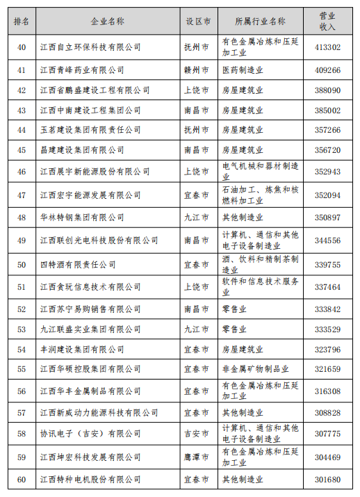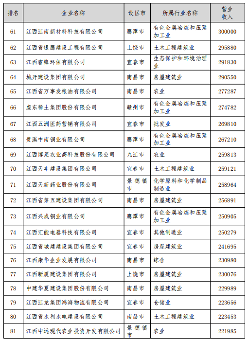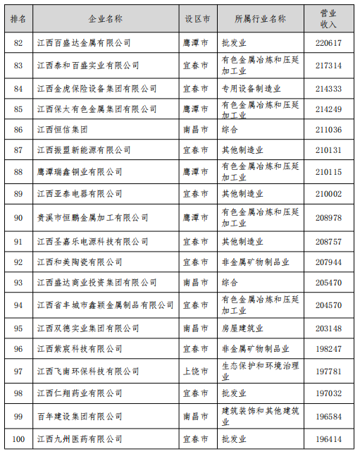 據悉,今年開展的江西民營企業100強調研排序活動中,得益於上規模民營企業參與調查積極性較大提高,江西民營企業100強入圍門檻為19.64億元,為近7年來最高值;營業收入超百億元的企業有13家,比去年增加4家;企業資產超百億元的企業有9家。(操端晶 劉夢慈)