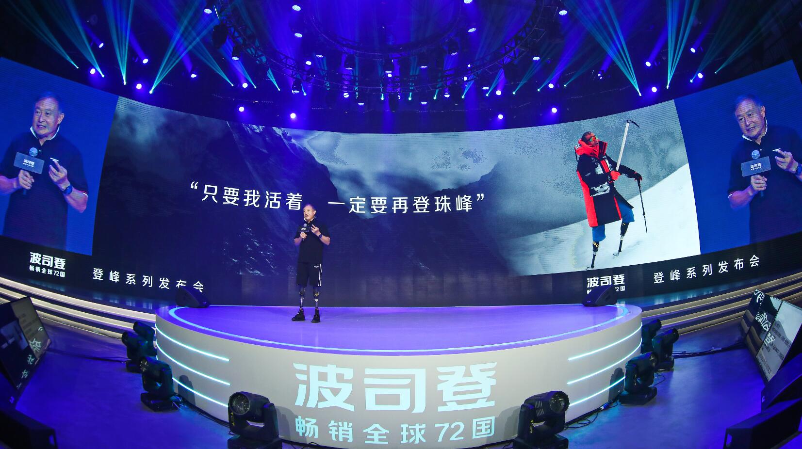 登峰系列設計團隊代表、意大利設計師Pietro Ferragina上台講述登峰系列的設計理念。他向觀眾介紹:「登峰系列是為致敬波司登和中國登山隊不斷挑戰的登峰精神。其顏色靈感來源於珠穆朗瑪峰上的雪山、岩石和中國國旗;版型設計經過了217次調整修飾,是為更加貼合中國消費者的體型輪廓;袖標以中國地圖為原點向外輻射,不斷延伸的72條線代表波司登溫暖全世界的初心。」