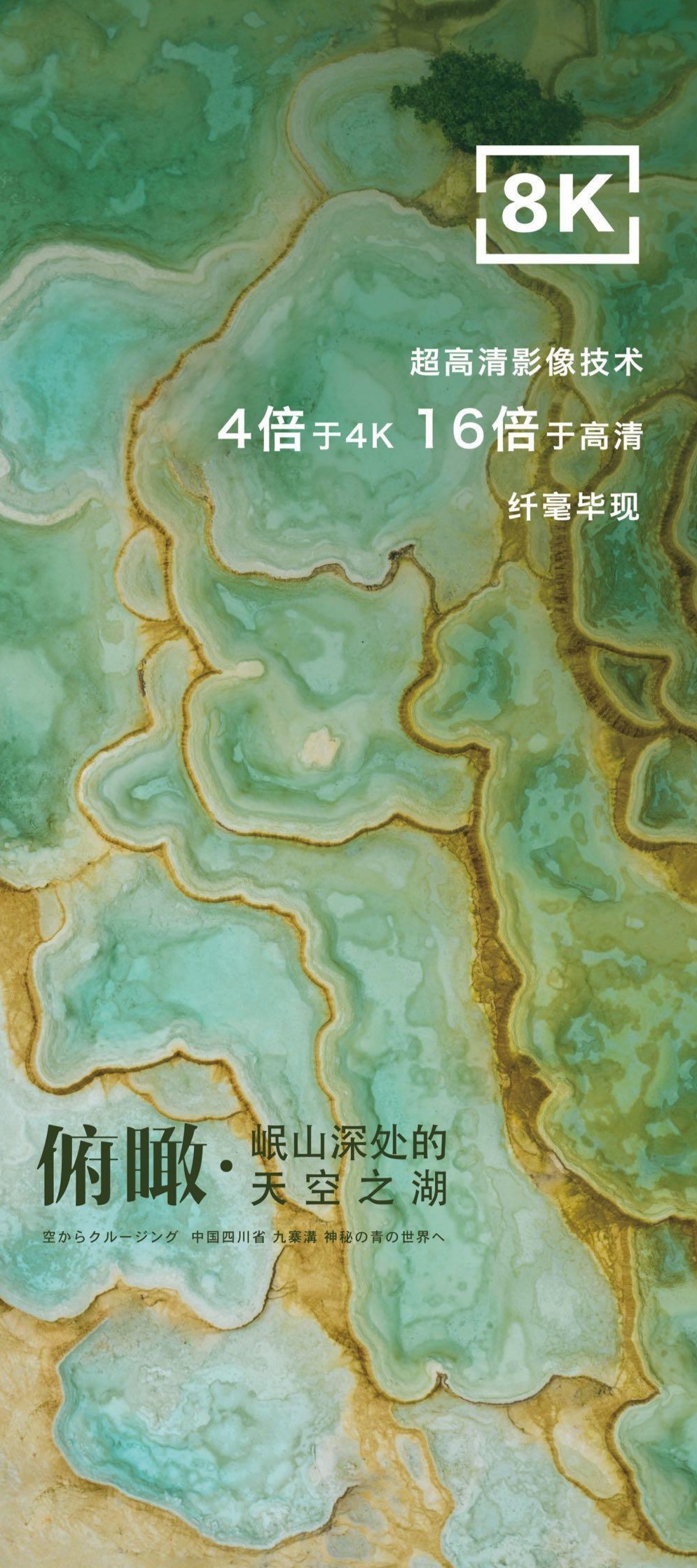 該紀錄片以九寨溝為核心題材,以岷山及岷江為敘事線索,串聯都江堰、松潘古城、黃龍等四川著名的自然人文景觀,採用8K超高清技術更加精彩地呈現空中視角的四川美景。該片是NHK《俯瞰》系列自然類紀錄片中的一集,該系列聚焦全球著名景區的神奇自然生態和當地特色文化,已拍攝製作了《法國盧瓦爾河》、《意大利西西里島》、《瑞士冰川之旅》、《德國浪漫之路》、《西班牙熱情的安達魯西亞》等五集。這次NHK 8K頻道播出的系列裏,還將呈現《葡萄牙走過夕陽斜照的西海岸》、《蘇格蘭堅守的榮耀之路》及希臘等地的美麗景觀。