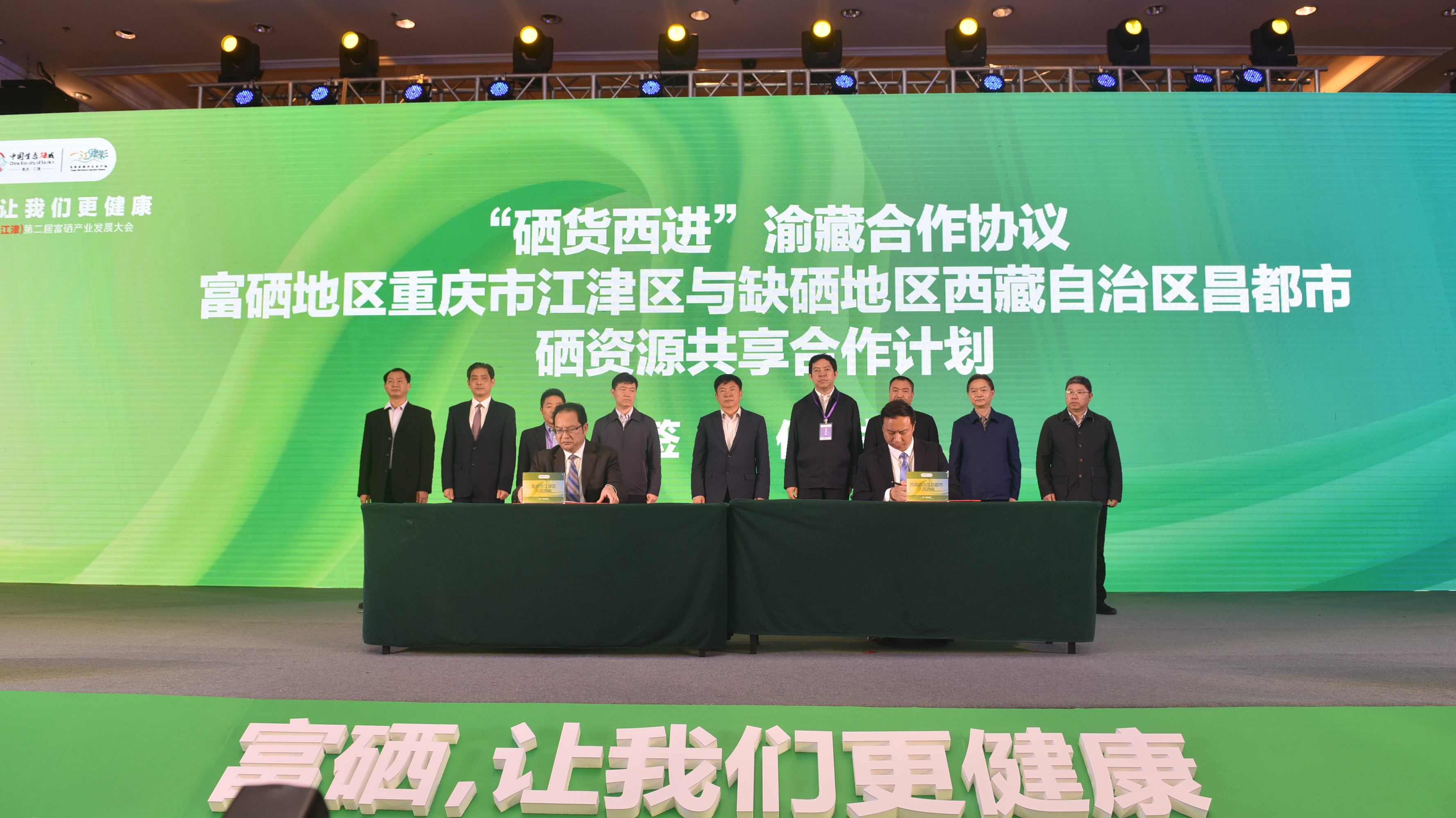 在產業合作方面,會上簽署“硒貨西進”渝藏(富硒地區重慶市江津區與缺硒地區西藏自治區昌都市硒資源共用合作計劃)合作協議。還舉行了上百家企業參與的富硒產業技術對接會議和產銷對接會,來自全球各地的企業,共同探討富硒產業商機。