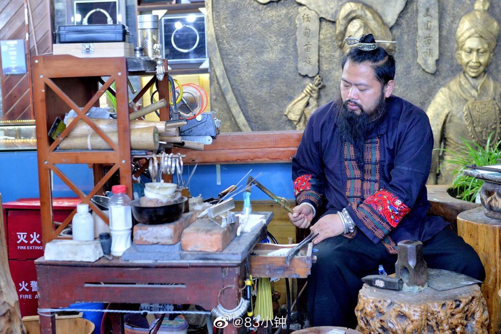 苗銀非遺傳承人在鍛造苗銀