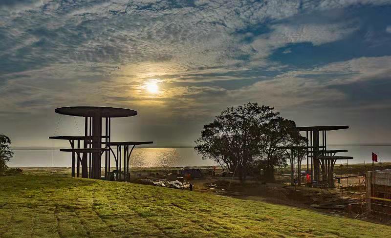 110月31日,記者在永修縣吳城實地考察候鳥小鎮時了解到,本屆國際觀鳥周將有大湖池、常湖池、朱市湖3個觀鳥點在吳城,目前正在緊張建設中。吳城投資有限公司校聯運營部部長樊堅介紹道:「建設的三個觀鳥點一共有四個大的項目,我們形象的把它們稱為四個菜一個湯,四個菜是一個觀鳥亭、一個休息區、一個是停車場、一個是配套設施,一個湯就是這個湖。重點的是觀鳥亭,我們把朱市湖觀鳥亭的鳥蛋打個形象的比方,叫『雛鳥欲出』。還有長湖池和大湖池的觀鳥點也都和鳥有關,大湖池有三個亭子,是個鳥巢的形狀叫「倦鳥歸林」;長湖池是兩個樹狀的,我們叫『瑞鳥雙棲』。整個設施建好後,可以從小眾化到大眾化,讓觀鳥更普及,帶動愛鳥、護鳥生態文明意識在人群中得到進一步提升。」截至目前,大湖池、常湖池、朱市湖3個觀鳥點6個觀鳥亭已完成主體工程;永吳水上公路2個觀景亭已完成主體工程和基礎裝飾;2條觀鳥小道已基本完成改造,4座3A級旅遊公廁、5個停車場即將投入使用,所有工程將在11月20日全面完工。